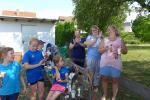 Einen tragischen Verlust muss indes die Kinder-Trainingsgruppe der Gaensefurther Sportbewegung verkraften. Mit den letzten Schultagen endete für die elf Kinder von sieben bis zehn Jahre das Training mit ihrer Silke. Der Umzug in eine andere Stadt ist leider nicht abzuwenden. Dabei hatte sie mit Überbringung dieser traurigen Tatsache wohl am meisten zu kämpfen. Als die Kinder und Eltern die langjährige Übungsleiterin zur letzten Trainingseinheit nun mit einer kleinen Abschiedsfeier überraschten, nahmen die Tränen ihren Lauf. Jedes Kind verabschiedete sich mit einer Rose, natürlich in den Gaensefurther Vereinsfarben blau/weiß. Ein Erinnerungs-T-Shirt für die beste Trainerin der Welt und ein Pokal durften natürlich nicht fehlen. Auch Vertreter der Laufgruppe überbrachten im Namen des Vorstandes ein kleines Dankeschön für die wichtige Arbeit mit den Kids. Silke Vorrath versteht es gut, das Einmaleins der Leichtathletik neigungs-, altersgerecht und spielerisch zu vermitteln. Mit den Sportanlagen rund um die Hecklinger Grundschule hat die temperamentvolle Kindergruppe auch alle Möglichkeiten für ein abwechslungsreiches Training. Doch wie kann es nun weitergehen? Diese Frage wüsste auch Vorrath allzu gerne beantwortet. Im Moment steht ein Übungsleiter-Papa in den Startlöchern, der erstmal alle 14 Tage das Dienstagstraining übernehmen wird. Freiwillige vor, die Gaensefurther Sportbewegung und allen voran die Kinder-Leichtathletikgruppe, sucht dringend nach ein, besser zwei tatkräftigen Unterstützern. Interessenten melden sich sehr gerne direkt bei der Kindergruppe, die immer dienstags ab 15:30 Uhr trainiert oder per E-Mail bei den Bode-Runners unter laufgruppe@gaensefurther-sportbewegung.de, damit ein kräftiges "Sport frei!" weiterhin für Begeisterung bei dem Sportlernachwuchs sorgt...
