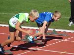 Das Bahnabschlußsportfest in Schönebeck war der letzte Freiluft-Wettkampf der Saison für die meisten der 8 Gaensefurther Leichtathleten. Nach einem verregneten Samstag herrschten am Sonntag mit Sonnenschein und einer leichten Windbrise gute Bedingungen für die jungen Sportler. Die 10jährigen Jungen bildeten die größte Gruppe der Gaensefurther, die im Dreikampf mit 50m Lauf, Weitsprung und Schlagballweitwurf antraten. Nachdem Lars Weidig den 50m Lauf mit 7,77 Sekunden souverän gewann, aber im Weitsprung (3,89m) und im Schlagballweitwurf mit 26,75 Meter das Nachsehen hatte, musste er auf dem Treppchen nur einem Konkurrenten aus Burg den Vortritt lassen. 973 Punkte bedeuteten den Silberrang. Mit 915 Punkten folgte Lukas Ladehoff auf Rang 3. Er konnte besonders mit seiner Wurfleistung von 34,30 Meter punkten (50m-8,65s/w-3,68m). Viel vorgenommen hatte sich Jan Hübner, der mit seiner Weitsprungleistung haderte, weil er nach 2 Fehlversuchen mit einem Sicherheitssprung nur 3,38 Meter erzielte. Dafür lief es im 50m-Lauf mit persönlicher Bestleistung von 8,38 Sekunden besser und mit 29,25 Meter im Ballweitwurf bewegte er sich im Mittelfeld. 866 Punkte brachten dem Staßfurter Rang 4 ein. Marc Krüger, bisher nur mit wenig Wettkampferfahrung, beendete den Dreikampf mit 751 Punkten auf Rang acht (50m-8,51s/w-3,61m (PB)/B-19,40m). Er freute sich besonders auf den 1000m Lauf, den er als Dritter seiner Altersklasse in 4:10,82 Minuten beendete.