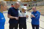 Adi selbst macht noch zwei- bis dreimal die Woche Sport. Fährt Fahrrad und macht Sport auf dem Stepper. Das macht ihn zu einen der fittesten 82-Jährigen weit und breit, der noch immer zahlreiche Termine wahrnimmt. „Das ist wie vor 40 Jahren. Der gleiche Einmarsch.“ Auch Ingo Kurze, Schulleiter der Grundschule Nord, muss lachen. Auch ohne Täve Schur, der aus privaten Gründen absagen musste, machte Adi in seinem Trainingsanzug eine gute Figur.