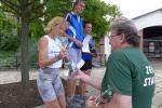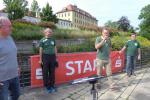 Für einige Bode-Runners der Gaensefurther Sportbewegung war die Nacht kurz, fiel der erste Startschuss zum elften Cuplauf in der Novo-Nordisk-Wertungsserie im weit entfernten Zeitz bereits um zehn Uhr. Ein paar Teilnehmer mehr hätte sich die SG Chemie Zeitz schon gewünscht, zumal die Veranstaltung als Landescup ausgetragen wurde. Die Damen gingen zuerst auf ihre fünf Kilometer, die Herren absolvierten eine Stunde später die doppelte Distanz. Der schnelle, kurvige Kurs durch den Schlosspark Moritzburg und das leidenschaftliche Anfeuern durch die Vereinskollegen, ließ den Puls von Anfang an höher schlagen. Einen wahren Krimi verfolgte man an der Strecke über zehn Kilometer bei Stefan Sindermann, der sich zum ersten Mal seinen unmittelbaren Konkurrenten Heiko Naumann vom SV Glauzig vornahm. "In Schierke war ich schon dicht dran, heute greife ich an!", puschte sich der Sportler bereits vor dem Startschuss. Da hätte vor lauter Animation Daniel Wuwer doch fast seine eigene Siegerehrung verpasst. Nur ein Sprint zum Siegerpodest rettete seine Ehrung über Platz zwei in der Altersklasse M40 über die fünf Kilometer. Sindermanns Schottenrock kam diesmal auch erst auf dem Podest zum Einsatz, mit dem er stolz auf Platz zwei vor Naumann seinen Preis in Empfang nahm.