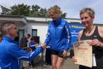 Zwei Tage später, beim Angeraner Krepe Crosslauf, war die Tragödie bereits vergessen und 19 Gaensefurther freuten sich auf den nächsten Run im Läufercup über 1,5 / 5,9 oder 10,7 Kilometer. Gerade vom Halbmarathon auf Hiddensee zurück, nutze auch Kirsten Geist den Cuplauf zum lockeren Auslaufen: "Fast wie an der Ostsee hier!", ließen doch die sandreichen Wege und die hohen Kiefern in der Ferne das Meer vermuten. Neuzugang Jens Kunkel testete die Strecke in der Walkingvariante und kam als Gesamtzweiter in das Ziel. Aber auch die Gaenseküken Emily und Lotta, Christa und Harald Fümel, Sandra Homann, Conny Günther, natürlich Kirsten Geist und ein taktisch gut gelaufener Stefan Sindermann sprangen als Platzierte erfreut auf das Podest.