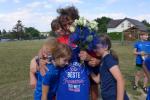 Einen tragischen Verlust muss indes die Kinder-Trainingsgruppe der Gaensefurther Sportbewegung verkraften. Mit den letzten Schultagen endete für die elf Kinder von sieben bis zehn Jahre das Training mit ihrer Silke. Der Umzug in eine andere Stadt ist leider nicht abzuwenden. Dabei hatte sie mit Überbringung dieser traurigen Tatsache wohl am meisten zu kämpfen. Als die Kinder und Eltern die langjährige Übungsleiterin zur letzten Trainingseinheit nun mit einer kleinen Abschiedsfeier überraschten, nahmen die Tränen ihren Lauf. Jedes Kind verabschiedete sich mit einer Rose, natürlich in den Gaensefurther Vereinsfarben blau/weiß. Ein Erinnerungs-T-Shirt für die beste Trainerin der Welt und ein Pokal durften natürlich nicht fehlen. Auch Vertreter der Laufgruppe überbrachten im Namen des Vorstandes ein kleines Dankeschön für die wichtige Arbeit mit den Kids. Silke Vorrath versteht es gut, das Einmaleins der Leichtathletik neigungs-, altersgerecht und spielerisch zu vermitteln. Mit den Sportanlagen rund um die Hecklinger Grundschule hat die temperamentvolle Kindergruppe auch alle Möglichkeiten für ein abwechslungsreiches Training. Doch wie kann es nun weitergehen? Diese Frage wüsste auch Vorrath allzu gerne beantwortet. Im Moment steht ein Übungsleiter-Papa in den Startlöchern, der erstmal alle 14 Tage das Dienstagstraining übernehmen wird. Freiwillige vor, die Gaensefurther Sportbewegung und allen voran die Kinder-Leichtathletikgruppe, sucht dringend nach ein, besser zwei tatkräftigen Unterstützern. Interessenten melden sich sehr gerne direkt bei der Kindergruppe, die immer dienstags ab 15:30 Uhr trainiert oder per E-Mail bei den Bode-Runners unter laufgruppe@gaensefurther-sportbewegung.de, damit ein kräftiges "Sport frei!" weiterhin für Begeisterung bei dem Sportlernachwuchs sorgt...