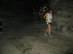 Um 11.00 Uhr waren dann alle 479 Starter bereit für das große Abenteuer. Eine gemessene Luftfeuchtigkeit von 23,5 Prozent, was einem Lauf in der Wüste entspricht, Temperaturen zwischen 28 bis 37 Grad Celsius, extrem glatte Salz-Passagen und die Steigung der sogenannten „Mauer“ mit 24 Prozent, sollte einem harten Bergmann-Arbeitstag entsprechen können. Verhalten gingen die Bode-Runners an die erste Fünf-Kilometer-Runde. In den spärlich beleuchteten Gängen hallte es: „Anja? Ja! Lutz? Ja! Dirk? Ja! Mike? Ja! Dann kam die Mauer: Kleine Schritte, die Arme schwangen kontrolliert mit, gleichmäßig tiefe Atemzüge, der Puls schlug bis unter den Helm, im Lichtkegel rieselte der Salzstaub. Nach gut zwei Kilometern Steigung: „Anja?“ Mehr bekam Sabine nicht raus. Keine Antwort. An der Trinkstelle schluckten die Läufer dankbar das gereichte Wasser. Einen Becher noch über den Kopf, irgendwie schmeckte jetzt alles salzig. Auf dem langgezogenen Plateau kamen die Läufer wieder zu Luft. Die letzten zwei Kilometer der ersten Runde ging es bergab. Nur mit Lampe und gutem Laufschuh war ein rasantes Tempo möglich. Wer im Dunkeln tappte oder ängstlich auf die glänzenden Salzstellen reagierte, schaltete lieber einen Gang runter. Vorbei an der riesigen Frischluftanlage, stieg den Läufern die Würstchenluft aus der unterirdischen Gastronomie in die Nase. Nun war es nicht mehr weit und 150 Zuschauer puschten die tropfenden Läufer in die zweite Runde. Bevor es wieder an die Mauer ging, verlangte der Körper noch einmal Wasser. Während manche gleich in den schnellen Schritt wechselten, hatten andere nur ein Ziel: Nicht stehen bleiben! Langsam aber beständig ging es wieder nach oben. Hitzestau, der Kopf und die Beine drohten zu platzen, Helm und Lampe nervten nur noch, man hatte das Gefühl die Decke fällt einem auf den Kopf. Gänsehaut pur, als die Kuppe endlich erreicht war. Ja!!! Los, nach Hause!