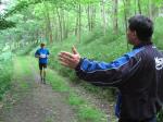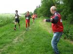 Nach verschlungenen Waldwegen passierten die 16-Kilometer-Läufer die sagenumwobene Mägdetrappe und es ging rasant bergab in Richtung Mägdesprung. Bei Sabine Börner sorgte das lose Felsgestein für einen unfreiwilligen Stopp. Zum Glück waren alle Glieder ordentlich warmgelaufen und der Abstieg konnte fortgesetzt werden. In Mägdesprung angekommen, ging es wieder 120 Höhenmeter hinauf. Geteiltes Leid ist halbes Leid dachte sich das Trio Sylvia Köhn, Lutz Klauß und Jens-Uwe Börner. Gemeinsam spornten sie sich an, machten sich Mut und kamen bald darauf über einen schmalen Klippenweg am sogenannten „Pioniertunnel“ an. Die Durchquerung des 15 Meter langen Felsdurchbruchs war nur in gebückter Haltung möglich, ein Fotomotiv wie für Börner gemacht! Am Verpflegungsstand konnten sich die Läufer noch einmal stärken, denn nun kam der Anstieg zum Birkenhäuschen. Hinab ins Steintälchen ging es wieder hinauf zum Himmelsgarten bevor die Strecke auf den letzten drei Kilometern herrlich sanft auslief. Im Zielbereich herzlich vom Publikum und Moderator empfangen, kümmerte sich ein Sportfreund „Peter“ rührend um alle einlaufenden Damenbeine. Er ließ es sich nicht nehmen, den Transponder für die Zeitmessung höchstpersönlich zu entfernen. Bis zum Zielschluss hatte sich der Regen zurückgehalten, bei der Siegerehrung schüttete es dann aber ordentlich. Aus dem schützenden Zelt, hinauf aufs Treppchen, durften wieder nur die Bode-Runner-Damen. Ina Schöler von der ZLG Atzendorf wurde ziemlich nass, denn nicht nur die Gesamtzweite bei den Damen, sondern auch der Sieg in ihrer Altersklasse verlangte nach ihrem Erscheinen. Isa Höber siegte souverän in der W 45 und Sylvia Köhn und Sabine Börner freuten sich über einen zweiten Platz in den Altersklassen W 30 und W 45.
