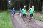 Mit "Hoher Schorn" auf 850 Metern war dann der dritthöchste Aussichtspunkt der Strecke erreicht. Schnell ein Foto mit Uwe vom Team Frankenwild, denn Uwe war an einem ganz anderen Punkt angekommen. Er wollte schlicht und ergreifend aufgeben, hatte genug gesehen vom Höhenweg des Thüringer Waldes, ihm tat einfach alles weh. Da hatte er aber die Rechnung ohne die Bode-Runners gemacht, die alles daran setzten, ihn wieder auf Trab zu bringen. Die Karawane zog weiter und euphorisch wurde das Kilometerschild „50“ gefeiert!