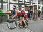 Beim Jedermann-Wettbewerb (750/29/5) gab nun auch die Vierte der Familie Börner ihren Triathloneinstand. Tina Börner, 21 Jahre, erreichte in 1:33:05 Stunden als Erste der AK 1 das Ziel. Mama Sabine wurde Zweite bei den Sen 1 in 1:23:40 Stunden. Immer besser in (Rad)Fahrt kommt Vater Jens-Uwe, der die Distanz in 1:17:36 Stunden und auf Rang acht in der Sen 2 bewältigte. Der Hecklinger Thomas Vetter, diesmal ausgestattet mit einem leichten Alurad, wurde in 1:19:04 Stunden Fünfter in der AK 4.