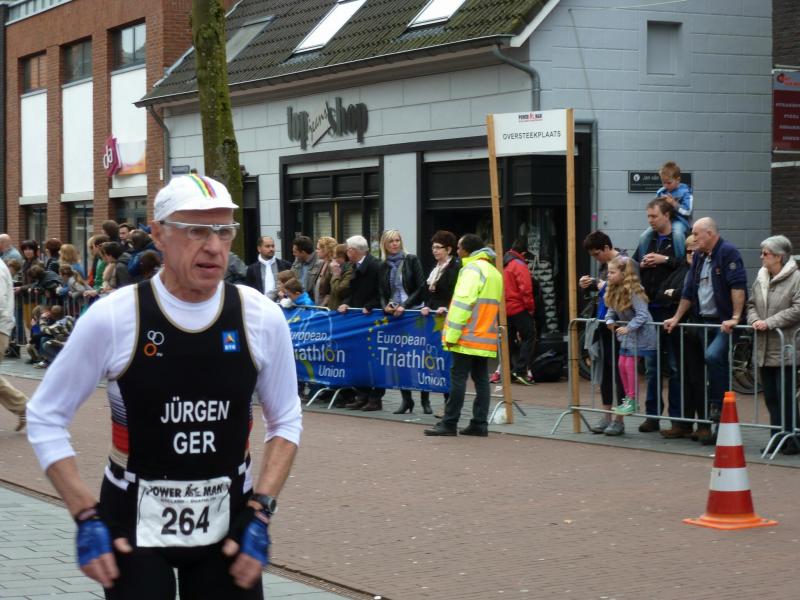 Die 238 Sportler aus 30 Nationen hatten mit etwa fünf Grad Celsius recht frische, aber sonnige und trockene Startbedingungen. Die zahlreichen Zuschauer an dem 2,5 Kilometer langen Rundkurs durch die Horster Innenstadt heizten die Stimmung mächtig auf. Sechs Mal hatte Bärbel die Gelegenheit ihrem Jürgen die Sporen zu geben, bevor er anschließend auf die Radstrecke wechselte. Keine Spur von Langeweile, denn kämpfte man nicht gegen den kalten Wind, erforderte der kurvenreiche Kurs ein ständiges Bremsen und erneutes Antreten. Die Zeiten in den Wechselzonen wurden separat gestoppt und dem Gesamtergebnis aufaddiert. Nach 60 Kilometern harter Muskelarbeit galt es also wieder die Laufschuhe zu schnüren. Mit zunächst schweren Füßen fand Eisfeld bald wieder Tritt auf der inzwischen bekannten Runde. Nach drei Durchläufen markierte die Ziellinie das Happyend. Auf dem Siegerpodest waren alle Anstrengungen vergessen. Ein unglaublich glücklicher Ausflug nach Holland, denn in den internationalen Ergebnislisten steht nun eine Staßfurter Erfolgsgeschichte!