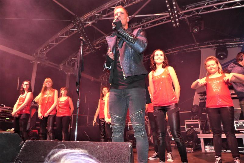 Ein farbenprächtiges Feuerwerk, untermalt mit passender Musik aus Film und Fernsehen, vom Guten- Abend-Gruß des Sandmännchens bis zu Hits von Metallica, brannten die Pyrotechniker aus Eibenstock wieder ab – und ernteten begeisterten Applaus von den Zuschauern am Stadtsee. Die Feuershow Robaria aus Thüringen faszinierte sowohl mit Elementen des Feuerspuckens, als auch mit Feuerkanonen. Zudem stimmte sie mit einem kleinen Feuerwerk auf den Höhepunkt des Abends am Stadtsee ein. Und die Schlagerfans ließen sich gern von Norman Langen in Partystimmung bringen. Die Dance Factory Egeln freute sich einmal mehr, zusammen mit einem Stargast auf der Bühne tanzen zu dürfen. Fotos: Jens-Uwe Börner