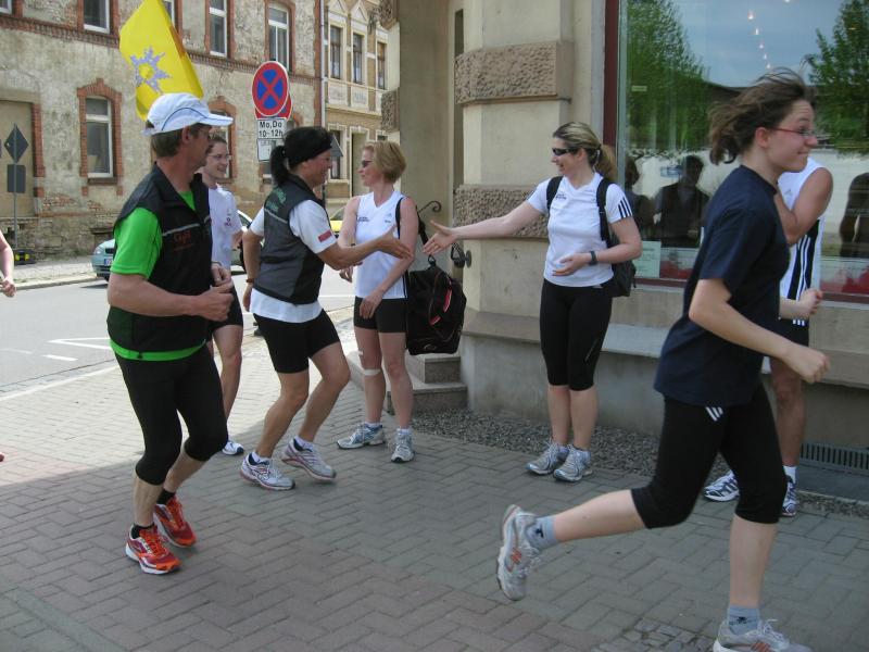 Durch die Übergabe der Staffelstäbe an die Laufgruppe aus Bernburg wurde letztendlich besiegelt, dass hier 2011 die Organisation des 6. Stadtwerkelaufes stattfindet.