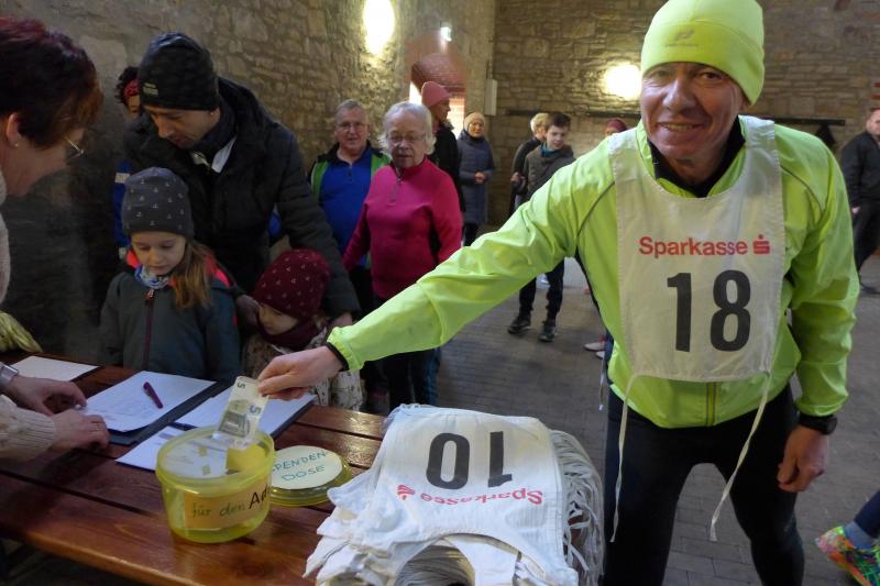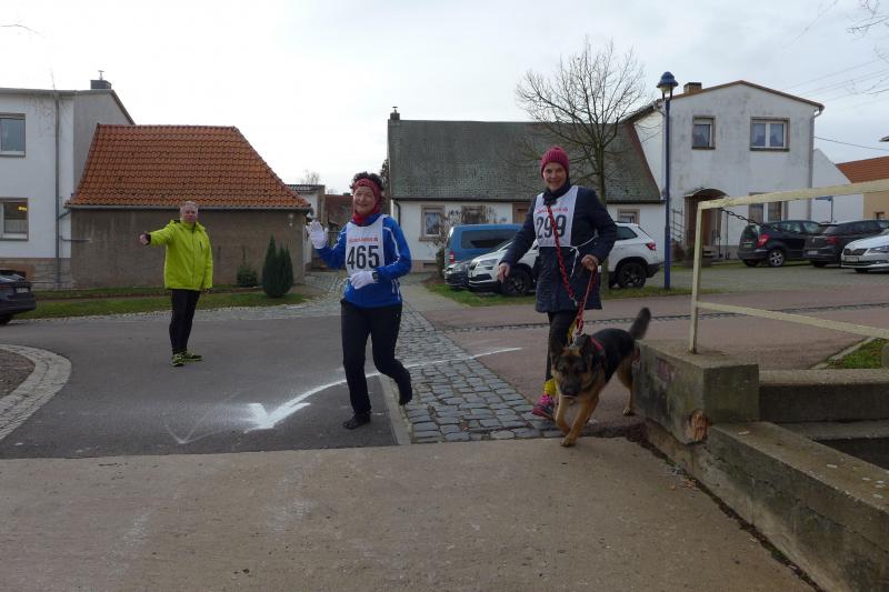 "Start um Zehn, elf Uhr Siegerehrung, ab 13 Uhr Regen!", so konnten die Bode-Runners den groben Fahrplan aus dem Chat der Trainingsgruppe entnehmen. Bis Mittag war also gutes Wetter angesagt, worauf sich auch zahlreiche Läufer und Walker zum Neujahrslauf in Aderstedt einfanden. Die Wiedersehensfreude war groß, denn nicht alle hatte man vorige Woche bereits beim Punschlauf gesehen. Die Höhe der Startgebühr konnte sich jeder Teilnehmer selbst überlegen und in der bereitgestellten Spendenbox entrichten: „Wir brauchen neue Startnummern!“, galt der Ansporn für eine hohe Summe. Dabei befanden die meisten Starter doch gerade die urigen Nummern aus Stoff, die als Leibchen um den Oberkörper gebunden wurden, als sehr originell. Im strahlenden Sonnenschein hielten die Vereine oder teilnehmenden Familienmitglieder ihre ersten Gruppenbilder für die Nachwelt fest. Die junge Hündin Paula, die zum ersten Mal mit den Bode-Runners der Gaensefurther Sportbewegung auf Reise ging, hielt mit Frauchen Renate noch respektablen Abstand zur Gruppe. Bei der Erwärmung in der großen Festscheune warteten die beiden lieber brav vor der Tür.