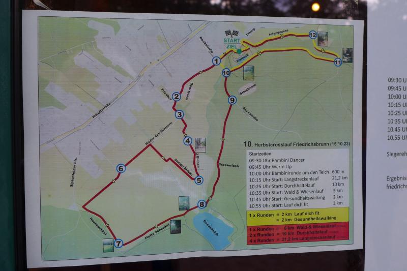 Naturlauf Nummer zwei hatten Gaensefurther dann auch am Folgetag, beim zehnten Friedrichsbrunner Herbstcrosslauf. Niemand hat mit ihm gerechnet, Stampnik war wieder da! Keine 24 Stunden vorher über den Brocken einen Marathon gefinisht, war er selbst nicht davon überzeugt, über die gemeldeten fünf Kilometer wirklich in das Ziel zu kommen. Nachdem für Jens-Uwe und Sabine Börner der Startschuss über zwei Runden von jeweils fünf Kilometern erfolgt war, begab sich Stampnik zusammen mit Nicole und Jens Schlottag auf die Verfolgungsjagt ihrer Vereinskollegen. Bei eisig frischen vier Grad Celsius ging es vom Kurpark in die weite Flur, über herrlich saftige Wiesen, dichte Mischwälder und so einige Höhenmeter. Börners waren gerade dabei die letzte krasse Steigung zu bezwingen, als die ersten Sprinter von hinten nahten. Als Dritter grüßte der Marathonmann vom Vortag, überholte das Ehepaar schwer atmend und hielt seine Platzierung bis in das nahe Ziel. Gratulation an Stampnik beim Durchlauf, mussten Börners ja erst noch ihre zweite Runde absolvieren.