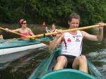 Schon zu Jahresbeginn planten Bode-Runners und Triathleten eine Sommerparty zwischen all den Wettkampfterminen am 1. August fest ein. Diesmal sollten alle in Kajaks steigen und die Bode hinunterschippern. Die ganz Sportlichen trafen sich bei fast 30°C in Gaensefurth und liefen sozusagen zur Erwärmung bis nach Wolmirsleben, wo auch schon Boris Funda mit seinen Booten wartete. Nun sollte der spannende und für die meisten ganz ungewohnte Teil des Tages kommen. Kein fester Boden mehr unter den Füßen und ab in einen Kahn. Immerhin war man ja nicht allein, denn vor oder hinter einem hatte man ja noch einen Partner und rundherum gesellten sich noch 14 weitere Kajaks. Der fröhlich laute Pulk startete nun und bewunderte Natur und Landschaft entlang des Flüsschens. In Unseburg erregte die “Invasion“ der vielen Boote schon Aufsehen. Munter ging es weiter und bei Klatsch und Tratsch entstand so mancher Bootsstau. Für weitere Unterhaltung war auch gesorgt, denn aus irgendeinem nicht näher benanntem Boot ergoss sich ständig eine Wasserfontäne, schließlich sollte es einem ja nicht zu warm werden. Von innen war auch für Abkühlung gesorgt, denn ein Teil der vielen Biergewinne bei Wettkämpfen konnte nun endlich geleert werden. Heil angekommen am Gaensefurther Schloss, wurde man von den Nichtpaddlern schon empfangen. Hier wurde nun gegrillt und üppig getafelt. Bald hatten sich alle von den ungewöhnlichen Strapazen erholt. Und ein super Tag nahm sein Ende.
