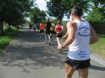 Als anspruchsvoll und für „Fortgeschrittene“ deklariert, sollte die Strecke ihrer Beschreibung durchaus gerecht werden. Bereits nach dem ersten Kilometer stieg die Asphaltstraße merklich an. Doch gerade als das Atmen zu anstrengend werden sollte, sorgte ein schattiger Waldweg wieder für Entspannung. Das Spiel zwischen Licht und Schatten erforderte die ganze Aufmerksamkeit der Läufer. Hatten die Veranstalter den quer liegenden Baum als Extra-Bonbon auf dem Weg drapiert? Wie bei der „stillen Post“ wurde vom Vordermann lauthals an den Verfolger weitergegeben: „Baum!“ Gehüpft, gegrätscht oder draufgetreten, die Barriere sollte für die Läufer kein Hindernis sein. Aus dem Wäldchen führte die Strecke hinaus auf die Felder. Bis zur Streckenteilung brannte die Sonne zusätzlich auf die erhitzten Köpfe. Streckenposten teilten nun die ankommenden Läufer auf: „Die Sieben Kilometer nach links, elf Kilometer nach rechts!“ „Machs gut, arme Bine“, verabschiedete sich Petra Becker von ihrer Vereinskollegin. Zusammen mit Heidi Schwenke vom BSV Eickendorf flitzte Becker nun in Richtung Konradsburg. Die Wahl der kürzeren Streckenlänge sollte sich am Ende gelohnt haben, denn beide Läuferinnen konnten in ihren Altersklassen auf das Siegertreppchen steigen.