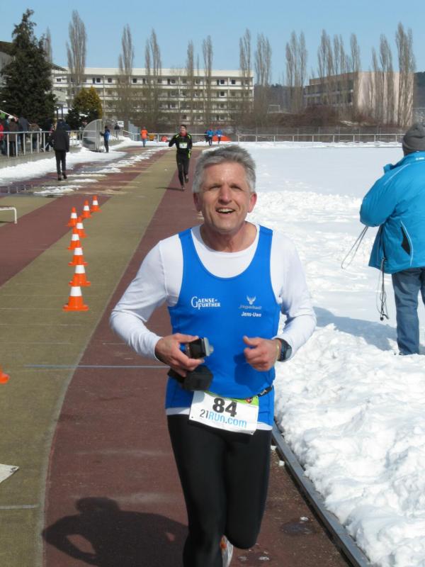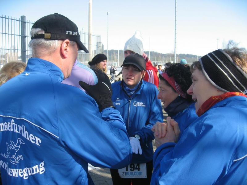 Noch die 30 Kilometer vom Trainingslauf des Vortages in den Beinen, schnitten die Frauen bei den Platzierungen am besten ab. Lutz Klauß sah sich wieder als Hase für das Damentrio, wobei nur Sylvia Köhn bis zum Ende folgen konnte. An den Bergpassagen mussten Sabine Börner und Petra Becker abreißen lassen, der heftige, minus acht Grad kalte Wind ließ die Abstände dann immer größer werden. Am Ende siegte Köhn in ihrer Altersklasse, Börner rettete einen zweiten Platz über die Ziellinie, Becker und Renate Liedtke trösteten sich mit einem vierten Platz. Die sieben Bode-Runners der Gaensefurther Sportbewegung wurden von zwei Triathleten unterstützt, welche durch ihre Ergebnisse fleißig Punkte für die Mannschaftswertung beisteuerten. Schnellster Mann aus dem Verein war Matthias Lampe, der die anspruchsvollen elf Kilometer in 50 Minuten zurücklegte. Fünf Minuten später war dann leider auch der heiße Tee Geschichte. Die warme Dusche und das anschließende traditionelle Klöße essen auf dem „Ziegenkopf“ waren letztlich Entschädigung für Kälte, Kampf und Muskelkater.