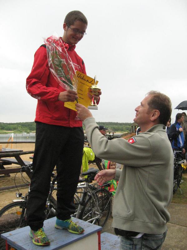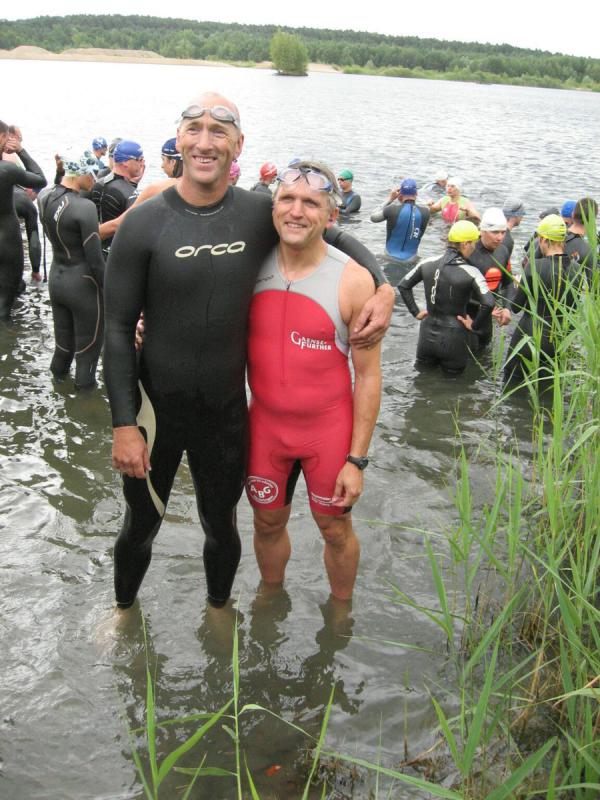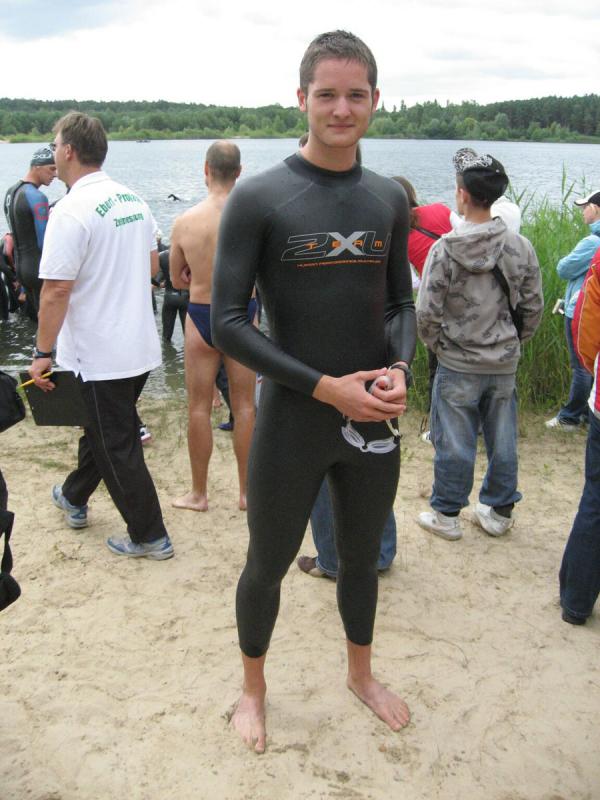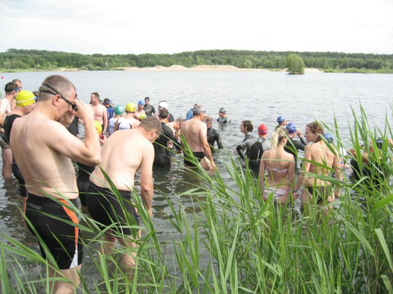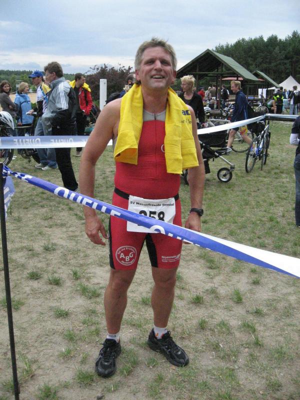 In der Nähe von Stendal, am idyllisch gelegenen Waldbad Wischer, starteten am Wochenende knapp 90 Teilnehmer über die ausgeschriebene olympische Distanz des SV Wasserfreunde Stendal 1923. Unter ihnen auch sechs Mutige der Gaensefurther Sportbewegung. Routiniert liefen die Vorbereitungen ab. Nachdem das Fahrrad mit Helm, Schuhe und Startnummerngürtel neben der Wasserschüssel für die Dreckfüße ihren Platz im Wechselgarten gefunden hatten, erfolgte im 21 Grad warmen Baggersee der Startschuss für die 1,5 Kilometer lange Schwimmstrecke. Im Kampf um die Positionen geriet der stille See mächtig in Wallung, bis sich die einzelnen Schwimmer wie an einer langen Kette eingereiht hatten. Da zwei Seerunden zu absolvieren waren, mussten die letzten fast bangen, von den ersten eingeholt zu werden. Jens-Uwe Börner, einfach nicht als Schwimmer geboren, hatte noch 750 Meter vor sich, als nach gut 22 Minuten der allererste Schwimmer aus dem Wasser hechtete. Starke 27:49 Minuten und damit schnellster Gaensefurther war Ralf Rosenmeier, gefolgt von Steffen Schöler, Torsten Blauwitz und Florian Börner. Die genannten dürften bereits auf der Fahrradstrecke gewesen sein, als auch Ingo Bieganski endlich das nasse Element hinter sich bringen konnte. Und nach knapp 45 Minuten hatte es sogar Jens-Uwe Börner geschafft. Bis zum wartenden Fahrrad mussten ungefähr 100 Meter im weichen Sandstrand zurückgelegt werden, was zusätzlich an den Kräften zehrte. Abkühlung verschaffte dann zunächst der Fahrtwind auf der durchnässten Kluft. Aber die hügelig zu fahrende 43,5 Kilometer lange Radstrecke heizte den Sportlern schnell wieder ein. Während die Ausreißer ziemlich dicht zusammen um jede bessere Position kämpften, versuchten Bieganski und Börner von hinten Plätze gut zu machen. Auch Börner gelang dies, trotz schwerem Stahlrad. Mit den Rädern wieder im Wechselgarten angekommen, sollte wie schon so oft die Laufstrecke die Entscheidungen bringen. In der Gaensefurther Spitze hatte sich Blauwitz kämpferisch nach vorn gearbeitet. Sollte es anfangs garnicht laufen, siegte er am Ende knapp vor Schöler. Prima in Form erwies sich auch Rosenmeier, der nur auf der Laufstrecke letztlich einbrach, den Vorsprung jedoch knapp vor Börner Junior halten konnte. Beide kamen in ihren Altersklassen auf das Podest. Dann folgte Bieganski, welcher durch seine 43-er Laufzeit noch so manchen Sportler überholt hatte. Inzwischen erfolgte bereits der Aufruf, den Wechselgarten für den Jedermann-Triathlon zu räumen. Zu diesem Zeitpunkt kam auch Jens-Uwe Börner endlich ins Ziel. Drei Stunden Fitness lagen hinter ihm. Eine Cola später stellte sich auch bei ihm der zufriedene Gesichtsausdruck ein. Bereits über den gesamten Tag herrschte Anspannung pur bei Jana Bieganski. Denn nun war es endlich soweit, der Start beim Jedermann-Triathlon über 750 Meter Schwimmen, 14,5 Kilometer Fahrrad fahren und fünf Kilometer laufen. Mit ihr stand zum ersten Mal Jana Berger am See, welche ganz relaxt ihr Triathlon Debüt angehen wollte. Beide gaben ihr bestes und bei Bieganski reichte es sogar für den dritten Platz in ihrer Altersklasse. Nach Siegerehrung und Tombola ging ein langer und aufregender Wettkampftag zu Ende. Beste Vorbereitungsarbeit auf den 11. Gaensefurther-Schlossbrunnen-Triathlon!