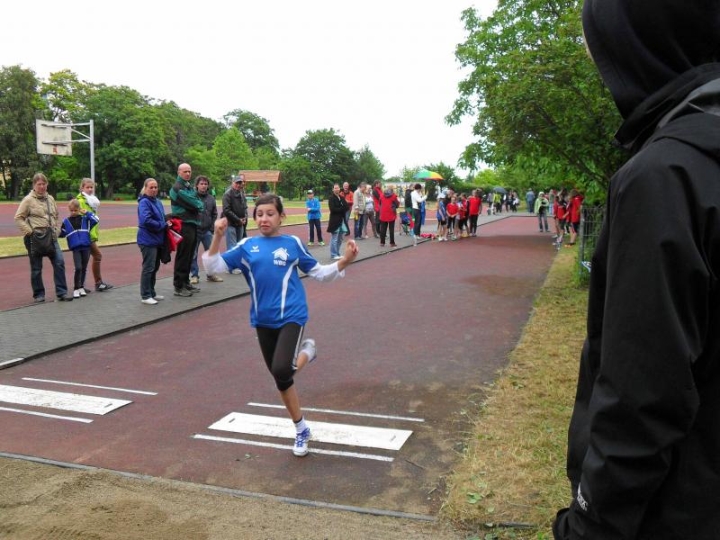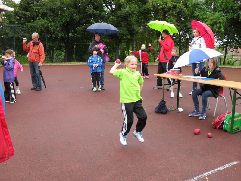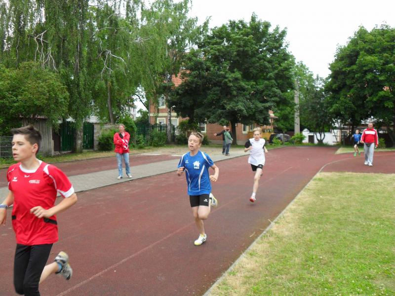 Nachdem das Rolandsportfest in Halberstadt vor 4 Wochen ins Wasser fiel, nahm man am Sonnabend einen neuen Anlauf. Da das Friedensstadion an diesem Tag nicht zur Verfügung stand, wichen die Organisatoren auf einen Schulsportplatz im Stadtteil Wehrstedt aus. Man hatte vor 2 Jahren hier schon einmal gute Erfahrungen machen können, allerdings mussten auch einige Abstriche in Kauf genommen werden. So gibt es nur 4 Sprint- und 2 Rundbahnen mit 200 Metern. Die Zeitmessung erfolgte handgestoppt. Aber nichts desto trotz für die jüngsten Athleten nicht die schlechtesten Bedingungen. Eine fast familiäre Atmosphäre, bei der unter Umständen auch schon mal Mutti oder Vati im Innenraum nebenher laufen konnten. Von unserem Verein reisten 9 Sportlerinnen und Sportler mit ihrer Begleitung in die Nordharzstadt.