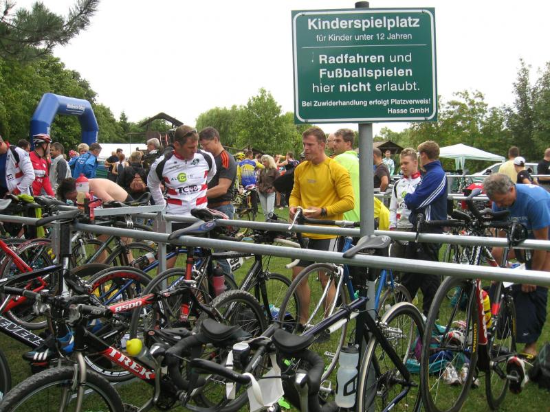 Florian Börner hat auf der zweiten Runde des ersten Elements abreißen lassen müssen. " Das Schwimmen eben ", zischte er. Über 14 : 24 Minuten kann man sagen : Da ist nach oben noch einiges offen. Gleiches gilt für die Raddistanz : 57 : 28 Minuten. Dafür lief zehn Plätze vor ihm im Klassement – und danach sowieso nicht – keiner die sechs Kilometer schneller als in 27 : 31 Minuten. " Auf der Laufstrecke habe ich einiges gut gemacht ", wusste Börner, der den ersten Platz bei den Junioren und den 40. Rang in der Gesamtwertung belegte in 1 : 39 : 24 Stunden. Pech dagegen hatte Ralf Rosenmeier, der das Ziel im Gehen erreichte. Sein Wettbewerb wurde nicht gewertet. Dabei kam er gut aus dem Wasser, lieferte sich auf der Radstrecke ein Kopf-an-Kopf-Rennen mit Detlef Schäfer, ging auf die Laufstrecke, verdrehte sich auf schlammigem Boden das Knie – und schied aus. Jens-Uwe Börner ging auf die zweite Laufrunde, als viele bereits im Ziel waren. Auch er hatte nach Wasser ( 16 : 26 ) und Rad ( 1 : 04 : 58 Stunden ) in seiner Spezialdisziplin ( 30 : 19 ) einges an Zeit gewonnen. Auf dem Stahlrad, hat er nach dem Altmark-Triathlon in Wischer berechnet, verliert er etwa fünf Minuten auf die Starter mit dem leichteren Alurad. Trotzdem wurde Börner erneut nicht Letzter, er erreichte nach 1 : 51 : 43 Stunden das Ziel, Rang 55 gesamt, Rang drei in der Senioren 2.