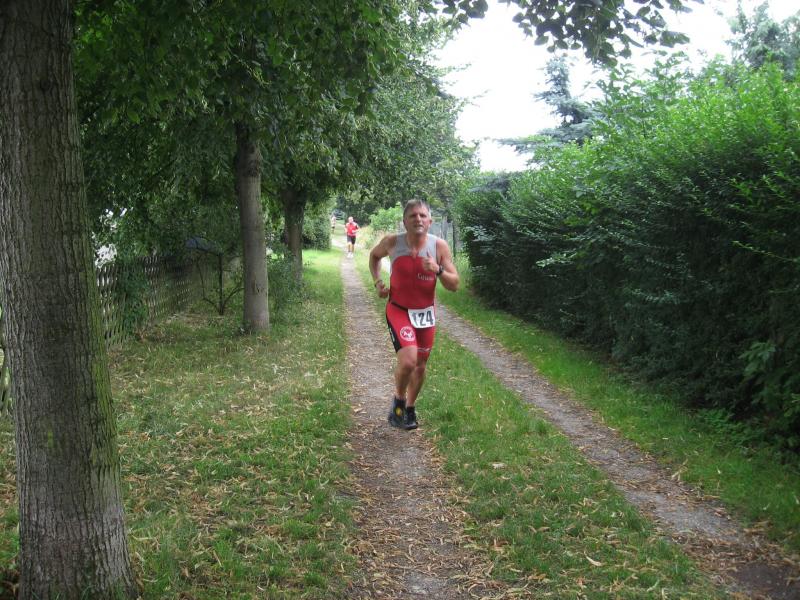 Als bester Gaensefurther kam Blauwitz nach 12 : 52 Minuten aus dem See. Er trotzte auf dem Rad dem Gegenwind, Rückenwind stellte sich erst auf der Zielgeraden und bergab ein. Eine 52 Kilometer pro Stunde erreichte dabei Jens-Uwe Börner. Blickte man in Kelbra beim Kyffhäuser Triathlon vor zwei Wochen noch in ein schmerzverzehrtes Gesicht, als Blauwitz vor allem gegen die Hitze ankämpfte, lief er sichtlich entspannter die abschließenden zwei Schleifen über jeweils drei Kilometer und in 26 : 51 Minuten – gesamt also : 1 : 31 : 32 Stunden. " Ich habe heute Athleten geschlagen, die ich noch nie geschlagen habe ", richtete er seinen Blick zum Beispiel auf Holger Rothenberger von Eintracht Ebendorf, der vier Plätze und mehr als eine Minute später durchs Ziel kam. In der internen Wertung wurde Blauwitz von Detlef Schäfer gefolgt : " Ich hätte noch eine Runde laufen können ", sagte dieser nach seiner Zielankunft auf Rang 30. Schäfer ist nicht der beste Schwimmer ( 13 : 55 ), dafür holte er einiges auf dem Rad auf ( 55 : 36 ) – und nicht zuletzt in seiner Paradedisziplin, dem Laufen ( 27 : 27 ). In 1 : 36 : 58 Stunden gewann er in der Senioren 2.