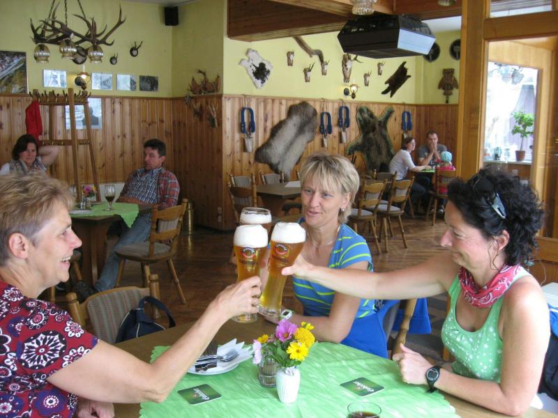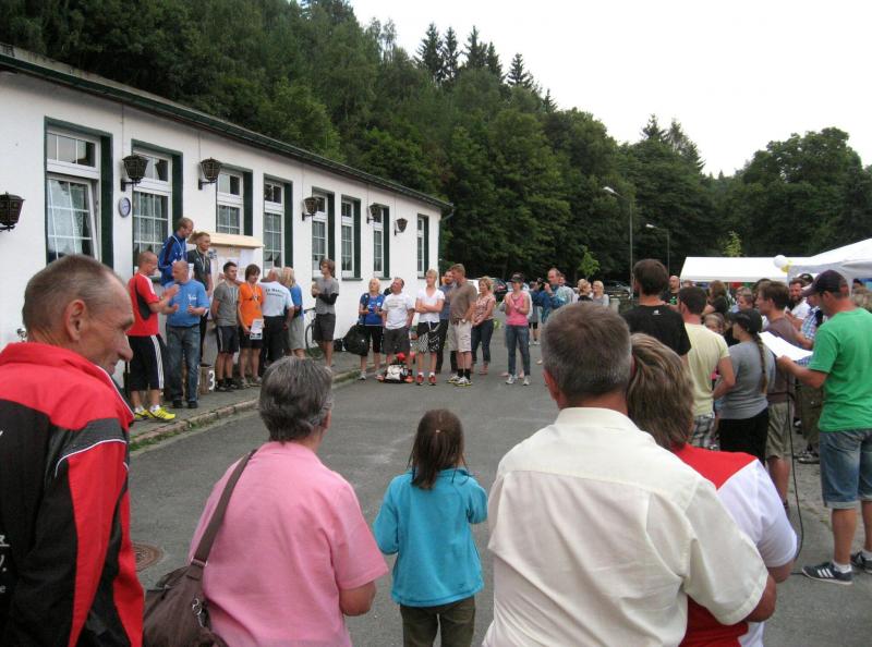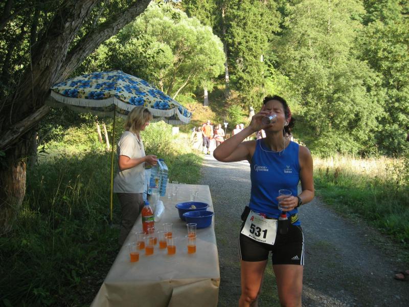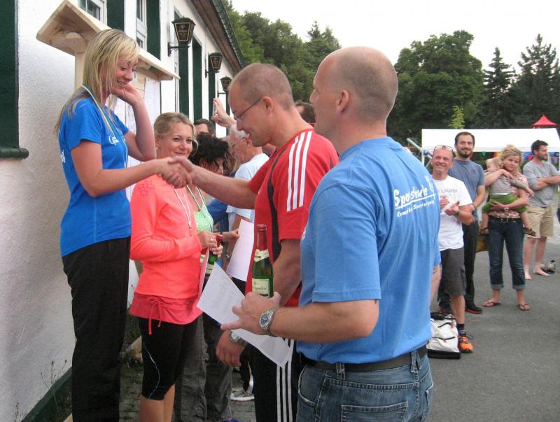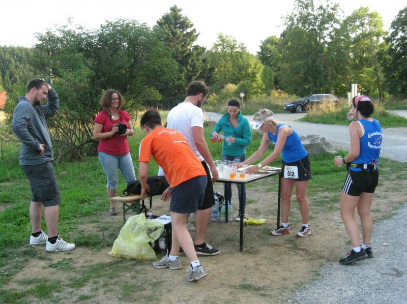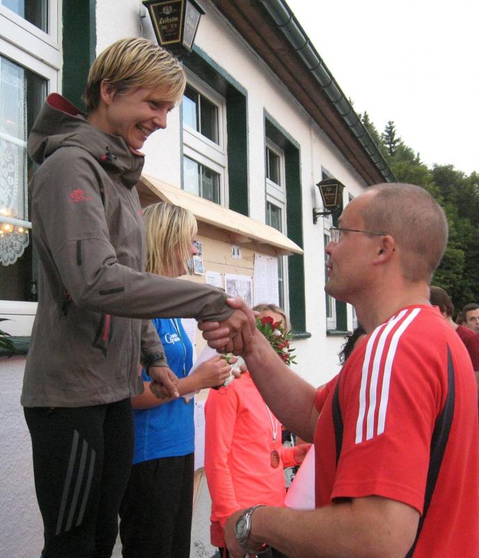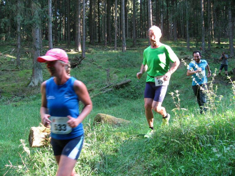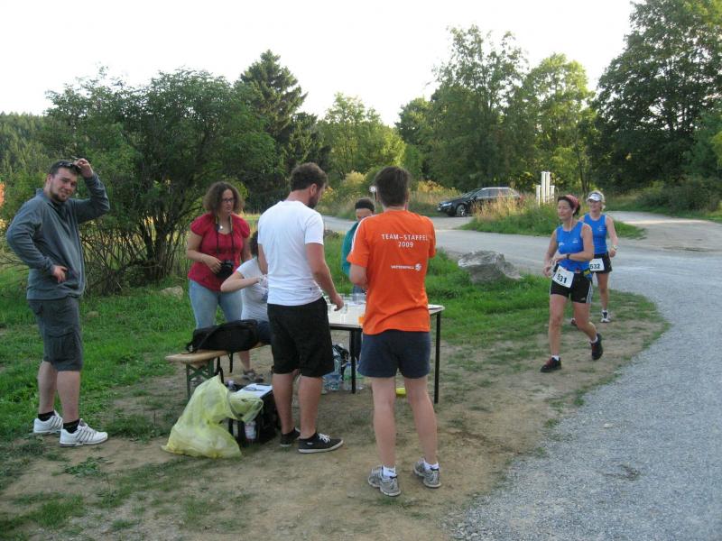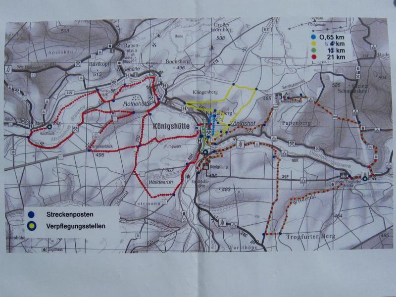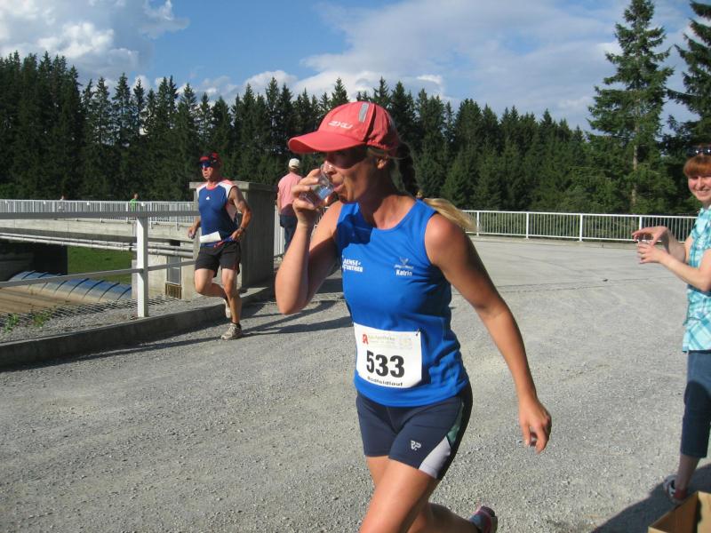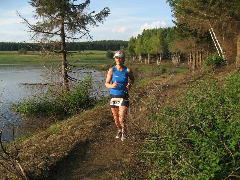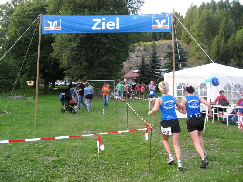 An dem Ort wo Kalte und Warme Bode zur eigentlichen Bode zusammenfließen, war der Start für 17:10 Uhr ausgeschrieben. Damit konnte das Kulturprogramm also nur vor dem Wettkampf absolviert werden. Nach einer Talsperrenbesichtigung und einem anständigen Mittagessen wurden in der Rübeländer Hermannshöhle, bei angenehmen acht Grad Celsius, die Läuferbeine ordentlich herunter gekühlt. Nach dem anschließenden Start in Königshütte mussten diese dann behutsam davon überzeugt werden, jetzt noch Schwerstarbeit zu leisten. Aber eine leichte Angst im Nacken trieb voran, denn die 21 Kilometer sollten möglichst ohne Umwege und vor Einbruch der Dunkelheit ins Ziel gebracht werden. Über herrliche Wald- und Wiesenwege war bald die Talsperre Königshütte erreicht. Gemeinsam mit den zehn Kilometerläufern kämpfte man sich hinauf zur Ruine Königsburg, von der es dann wieder rasant hinab ging. Nach 9,5 Kilometern trennten sich die Strecken und Renate Liedtkes erster Platz in der Altersklasse W60 war nur noch 500 Meter entfernt. Für die Langdistanz ging es wieder von 425 bergan auf über 500 Höhenmeter. Jens-Uwe Börner hatte sein Tun, den Frauenkampf fotografisch für die Nachwelt festzuhalten. Während sich Katrin Krebs an der Spitze zwischen Platz zwei und vier einsortieren musste, gelang es Petra Becker an Sabine Börner heran zulaufen. Nach dem Umrunden der Talsperre Mandelholz ging es in leichten Wellen an der Kalten Bode zurück nach Königshütte. Krebs brachte im Gesamtfeld der Frauen einen heiß erkämpften dritten Platz über die Ziellinie, Börner und Becker finishten am Ende wie so oft, gemeinsam. Wie für die Bode-Runners gemacht, ehrte der Veranstalter erfreulicherweise die Gesamtplätze eins bis sechs mit einer Medaille. Neben Krebs gingen die beiden letzten Frauen-Lorbeeren an Börner und Becker. Bei den Männern freute sich Triathlet Daniel Ragoß über den sechsten Platz Gesamt, was für ein Fest für die Gaensefurther Sportbewegung! Nach einer erfrischenden Outdoor-Dusche beschäftigte man sich mit der Auffüllung der Energiespeicher mittels Schmalzstulle und einem Alkoholfreien. Pünktlich zum Sonnenuntergang erfolgte die Rückreise: Keine Bode-Runners mehr auf den Strecken! Eine gelungene Premiere die hoffentlich im nächsten Jahr wieder in den Laufkalender passt…
