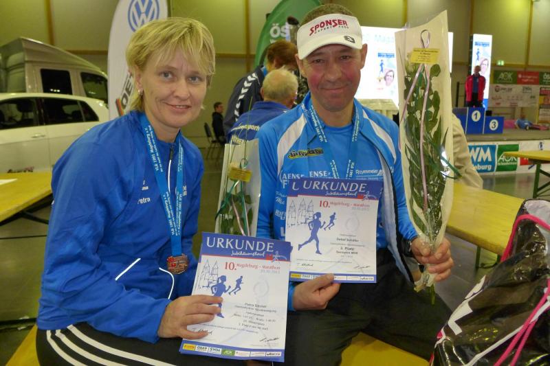 Für Teamkollegin Petra Becker dürfte es hingegen etwas anstrengender gewesen sein. Sie hatte eine Woche zuvor in München einen Marathon absolviert und startete in Magdeburg beim Halbmarathon. Mit einer 1:47:35 durfte sie sich ebenfalls über den dritten Platz in der W 45 freuen. "Ich habe großen Respekt vor dieser Leistung", sagte Schäfer.