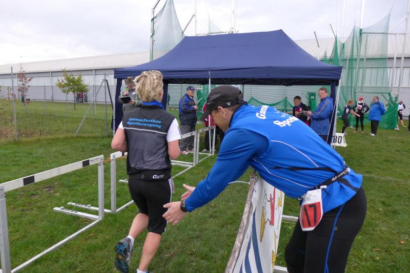 Schon bei der Wettkampfvorbereitung lag nicht nur der Nieselregen, sondern auch ein ganz besonderes Kribbeln in der Luft. Schließlich handelte es sich um eine Meisterschaft und so standen die Gaensefurther Freizeitsportler mit den schnellsten Läufern Sachsen-Anhalts an einer Startlinie. Die kurzen Distanzen versprachen Sprintcharakter, was auf der rutschigen Wiesenstrecke zur Herausforderung werden sollte. Hier waren die Profis im Vorteil, denn statt dicken Profilsohlen liefen sie auf leichten Spikes davon. Jawohl, auf und davon! Katrin Krebs, momentan schnellste Sprinterin in den Reihen der Bode-Runners, erstarrte kurz, als scheinbar mit dem Startschuss die Konkurrenz schon um die Ecke huschte. Also Schreck verdauen, ranlaufen und versuchen das Feld von hinten aufzurollen. Am Ende wurde sie schnellste Bode-Runners-Frau. In der starken Altersklasse W35 reichte die Zeit leider nur für einen fünften Platz. Mehr Glück hatte da Renate Liedtke. Sie kämpfte sich ebenfalls durch die 4,4 Kilometer lange Cross-Strecke und strahlte in der Altersklasse W60 mit einem dritten Platz.