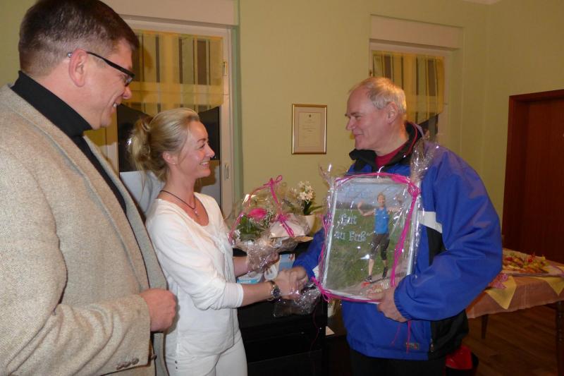 Bode-Runners Trainer Lutz Klauß, lief mit seiner Gruppe letzten Donnerstag ganz bewusst die Goethestraße Nummer 1 in Staßfurt an. Gleich neben der „Löwen-Apotheke“ gelegen, begrüßten sie dort Vereinsmitglied Katrin Krebs in ihrer neu eingerichteten Praxis für medizinische Fußpflege. Zahlreiche Neugierige hatten sich bereits am Eröffnungstag eingefunden. Gemäß dem Motto „Gut zu Fuß“, dreht sich wirklich alles in den Räumlichkeiten um diese doch so wichtigen Körperteile. Sogar der Aufschnitt auf den leckeren Canapés war pedal aufgemacht. Da bekam das Brot mit dem "Käsefuß" mal eine ganz andere Bedeutung. Bei einem Gläschen Sekt lauschten die laufbegeisterten Gäste den interessanten Ausführungen zur Gesunderhaltung der stark beanspruchten Gliedmaßen. Modern und funktionell eingerichtet, können sich nun einmal mehr, Staßfurter Füße entspannt in die geschickten Hände der frisch geschulten Podologin begeben. So ließen auch die ersten Einträge in den Terminkalender nicht lange auf sich warten. Den Bode-Runners fehlt nun eigentlich nur noch ein ausdauernder Physiotherapeut, der nach den langen Trainingseinheiten auch der beanspruchten Muskulatur die notwendigen Streicheleinheiten vermitteln würde.