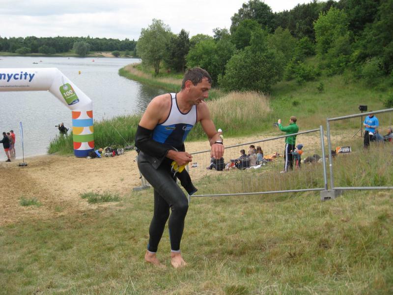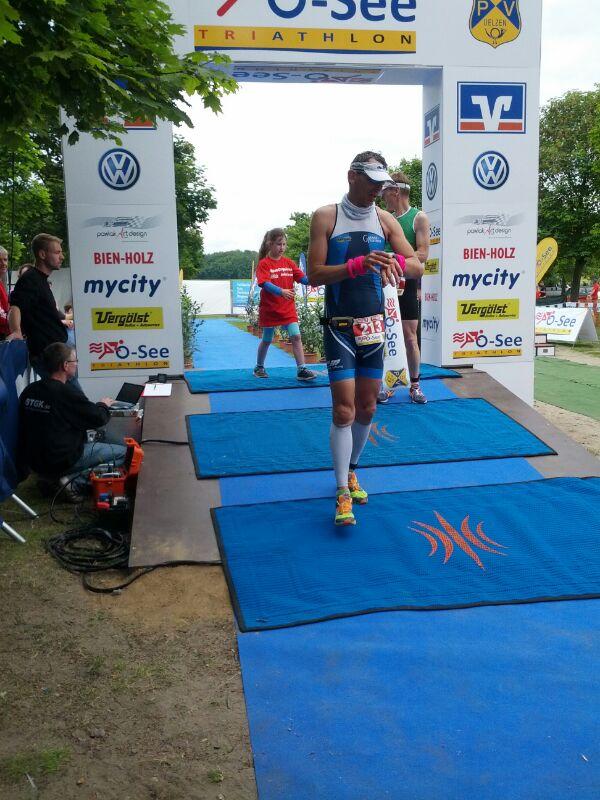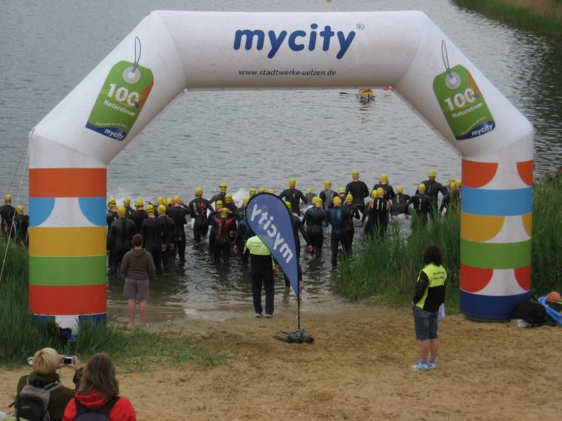 Am 01.06.2014 starteten beim 7.O-See Triathlon des Post SV Uelzen die Sportfreunde Martin Wille über die Olympische Distanz (1,5 km Schwimmen, 45 km Rad, 10,5 km Laufen) und Steffen Schöler über die Mitteldistanz (1,95 km Schwimmen, 90,6 km Rad, 21 km Laufen). Bei 17 °C Wassertemperatur, Luft gefühlte 12°C, ging es um Punkt 9:00 Uhr für Schöler an den Start am schön gelegenen Oldenstädter See. Hier hieß es dann zwei Runden mit einem kurzen Landgang zu absolvieren bevor es um 09:35 in den Wechselgarten und dann auf die Radstrecke ging. Zwischenzeitlich um 09:30 Uhr fiel dann auch für die Starter auf der Olympischen Distanz der Startschuss. Martin Wille kam nach 23:51 min. aus dem Wasser und lief in den Wechselgarten ein.
