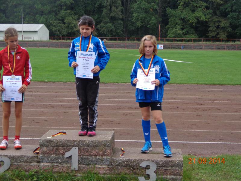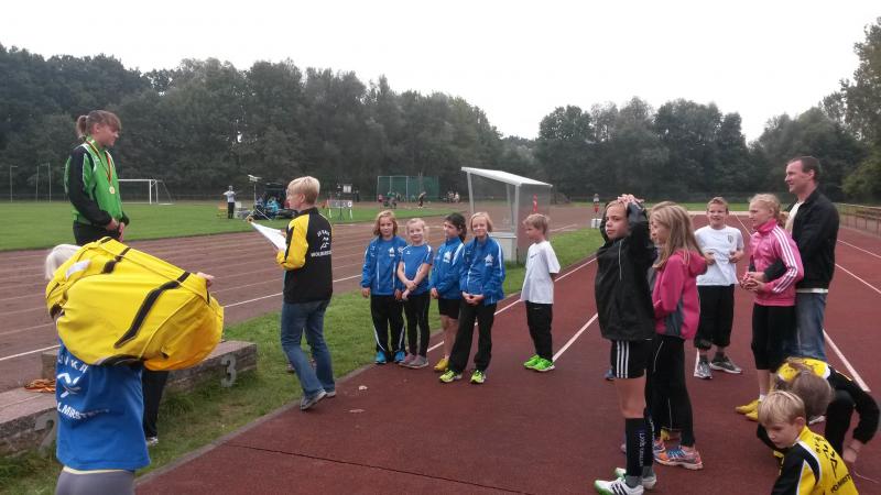 Die achtjährigen Mädchen des Vereins haben sich inzwischen zu einer Macht entwickelt. Michelle Otto glänzte dreimal mit Platz eins: im 50m Lauf, Weitsprung und 800m Lauf. Nur im Schlagballweitwurf musste sie drei Konkurrentinnen den Vortritt lassen, obwohl sie mit 22,07 Metern ihre PB um 3,5 Meter verbessern konnte. Eine der Konkurrentinnen war ihre Schwester Laura. Sie schaffte außer im Schlagballweitwurf mit 22,60 Meter (3.) auch im Weitsprung (2.) und 800m Lauf (4.) persönliche Bestleistungen und konnte zwei Mal zusammen mit Michelle einen Podestplatz einnehmen. Die Siegerin im Schlagballweitwurf hieß wie nun schon so oft Nina Ritter. Ein weiterer vorderer Platz gelang ihr im Weitsprung (3./PB), wo das Podest somit vollständig in Gaensefurther Hand war. Im 50m Lauf wurde Nina Fünfte und im 800m Lauf Siebte. Weil Fabienne Sämisch größenmäßig oft Nachteile gegenüber Gleichaltrigen hat, muss sie sich besonders anstrengen, um mithalten zu können. Das gelang ihr gut, aber für einen Spitzenplatz reichte es diesmal mit 2 Mal Platz sechs, acht und neun nicht. Den Höhepunkt bildete für die Mädchen der Altersklasse w8 die Staffel. Mit großem Engagement waren Nina, Laura, Fabienne und Michelle bei der Sache, siegten deutlich und durften sich über die begehrten Goldmedaillen freuen.