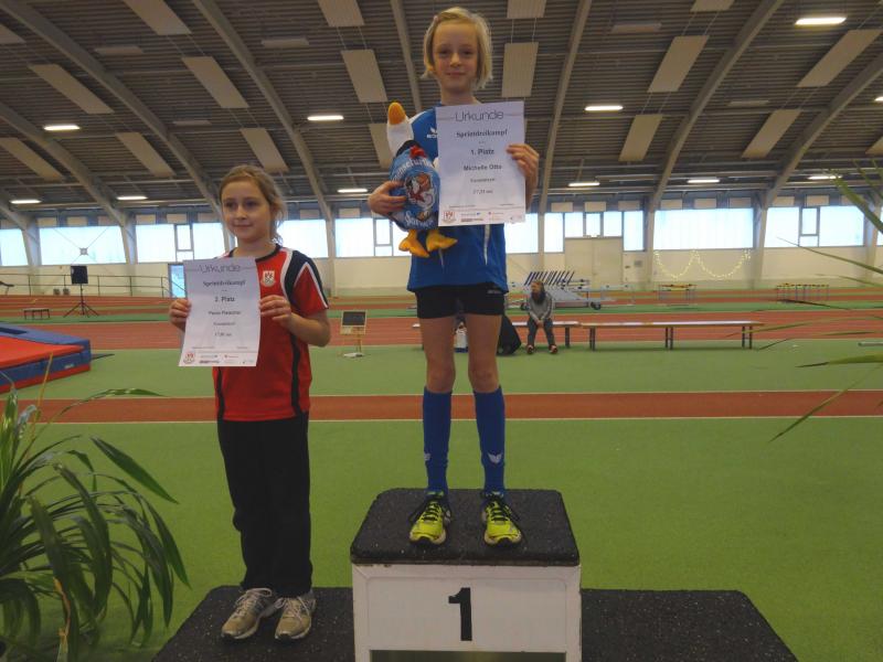 Die größte Gruppe der Gaensefurther bestand aus den Mädchen der Altersklasse 8. Michelle Otto bewies einmal mehr, dass es für ihre Konkurrentinnen schwer ist, ihr den obersten Podestplatz strittig zu machen. Lediglich einer Sportlerin vom SC Magdeburg gelang es, in der Disziplin 30m Hochstart um 4 Hundertstel schneller zu sein als die Egelnerin, die hierfür 4,97 Sekunden benötigte. Während die Zeitmessung für die 30m fliegend 4,25 Sekunden anzeigte überquerte sie beim 50m Lauf die Ziellinie mit deutlichem Abstand in 8,11 Sekunden. Sehr zur Freude der Dreikampf-Siegerin durfte sie dann das neue Maskottchen der Gaensefurther, Gans Auguste, über die Ferien als Gast in ihrem Zimmer einquartieren. Gern würden auch die anderen Mädchen des Teams das von der Schlossbrunnen Wüllner GmbH gesponserte Plüschtier beherrbergen und haben sich deshalb fest vorgenommen, künftig durch gute Leistungen dieses Privileg in Anspruch zu nehmen. In der Rangfolge auf Platz sieben kam Laura Otto. 4,81 Sekunden fliegend, 5,41 Sekunden im Hochstart und 8,85 Sekunden im 50m Lauf standen für sie zu Buche. Nina Ritter wartete als Achte mit Ergebnissen von 4,86s (F), 5,34s (H) und 9,03s (50m) auf. Durch Resultate von 4,93s (F) und 4,99s (H) auf Rang 6 liegend trat Fabienne Sämisch an die Startlinie zum 50m Lauf, durch den sie trotz PB (9,34s) am Ende nur Neunte wurde. Das erste Mal bei einem Hallensportfest war Sophia Böhnke, die mit PB im 50m Lauf von 9,37 Sekunden und Zeiten von 4,98s (F) und 5,5s (H) als Elfte auf dem Wettkampfprotokoll erschien.