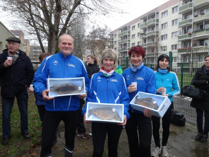 " Lebende Karpfen aus einer Tonne zu fischen wie vor 34 Jahren beim ersten Staßfurter Silvesterkarpfenlauf im damaligen Leninring - auf diesen Spaß müssen die Teilnehmer heutzutage verzichten. Nicht weniger freuten sich aber die Gewinner der 20 Schuppentiere, die am Silvestervormittag 2014 ausgelost wurden. Sigrid Herrmanns vom SV Salzland und ihr Team sorgten wieder hervorragend für diesen sportlichen Ausklang, bei dem es Dank Sponsoren nicht nur die Karpfen- das Stück für fünf bis acht Euro übrigens- zu verlosen gab, sondern auch Glühwein und Würstchen gratis verteilt wurden. Die Gymnastikgruppenleiterin zählte etwa 60 Teilnehmer- unter ihnen auch OB-Kandidat Sven Wagner, der seit Jahren schon hier startet- und Zuschauer. Den Startschuß ließ sich Oberbürgermeister René Zok nicht nehmen. Als erfolgreichstes Team ging Familie Albrecht aus Staßfurt auf die anderthalb Kilometer lange Strecke ums Karrè..."