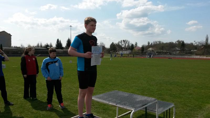 Zu guter Letzt folgte dann der Diskuswurf. Hier zeigte sich das fehlende Training am deutlichsten. Mit der Drehtechnik kam Marek gar nicht zurecht und somit begnügte er sich damit, den Diskus aus dem Stand zu werfen. Dazu kam, dass er sich statt eines 750 g Wurfgerätes für seine Altersklasse versehentlich einen 1 kg Diskus auswählte. Mareks bester Wurf landete bei 24,51 m. Das bedeutete zwar auch eine Steigerung seiner PB, aber er beendete dennoch enttäuscht und mit der Erkenntnis, dass Diskus nicht seine Disziplin ist, diesen Wettbewerb.