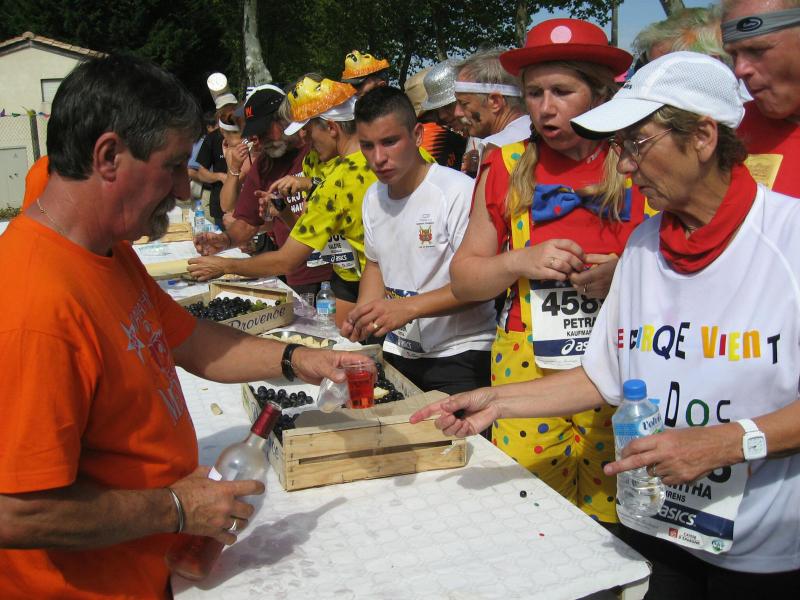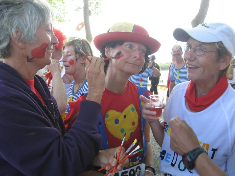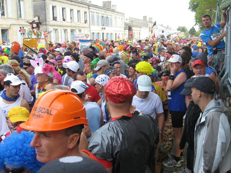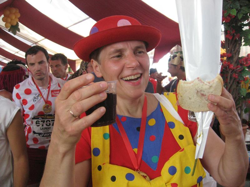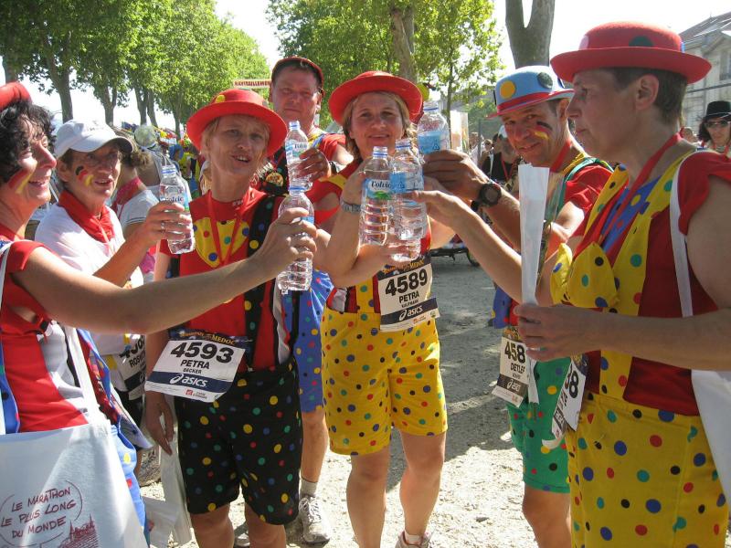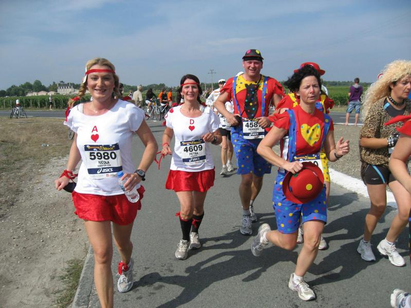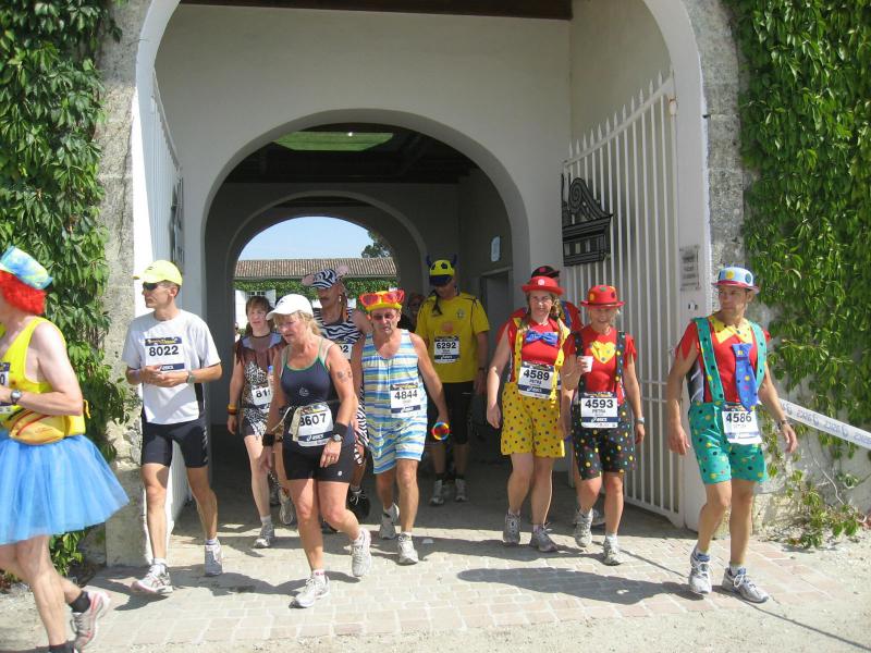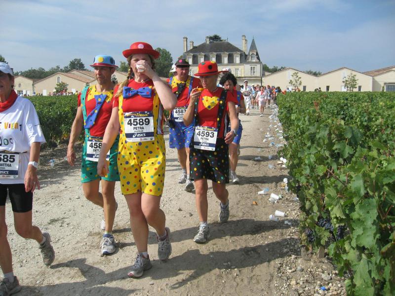 Neun Bode-Runners der Gaensefurther Sportbewegung gehörten zu den glücklichen Teilnehmern am Marathon des Chateaux du Medoc. Zusammen mit Sportlern aus Halberstadt, Aschersleben, Bernburg und Frankfurt bezog man im Feriendorf Lacanau an der südfranzösischen Atlantikküste Quartier. Ein sonnenverwöhntes Paradies unweit der Chateaus, welche sich durch die edelsten Weine dieser Erde ihren Namen machten. Erwartungsvoll begab sich die Gruppe in das Meer der knapp 9.000 Läufer und nach einem fast zwei stündigen Showprogramm, ging es dann wirklich auf die 42,195 Kilometer lange Weinverkostung. Der erste WC-Stopp erfolgte bereits vor dem ersten Kilometerschild, denn der eigene, gut gefüllte Getränkevorrat machte sich nach dem langen Stehen in morgendlicher Kälte bemerkbar. Kein leichtes Unterfangen, hatte man doch die ursprüngliche Laufbekleidung gegen ein Clown-Kostüm eingetauscht. Nachdem alle Hosenträger und Sicherheitsnadeln wieder an der richtigen Stelle waren und man inzwischen von schätzungsweise 4.000 Läufer überholt wurde, verließ die Gruppe unter dem Beifall zahlreicher Schaulustiger Pauillac. Eine Runde um die ersten Chateaus war zu absolvieren, bevor man nach 22 Kilometern den Ort wieder erreichen wollte. Ziel war, diese Strecke ziemlich zügig zu laufen, dann bei Kilometer 22 Renate Liedtke mitzunehmen und den Rest des Marathons gemeinsam zu genießen. Einen ersten erlesenen Tropfen Beychevelle gab es bereits bei Kilometer sieben. À la vôtre! Läufer aus der ganzen Welt prosteten sich genüsslich zu, die Bode-Runners vor jedem Schloss im Fotoshooting. Alle Verpflegungsstände waren üppig gedeckt. Neben frischem Obst reichte man den Läufern Salzgebäck, verschiedene Brot- und Käsesorten, Kuchen und Kekse, Trockenfrüchte, Wasser, Cola und natürlich immer wieder ein Becherchen Rotwein. Nach gut 2,5 Stunden erreichte man wieder Pauillac und Renate übernahm die Tempoarbeit. Mit den Chateaus Mouton und Lafite Rothschild nährte sich die Gruppe einem weiteren Höhepunkt. In der Parkanlage am prunkvollen Schloss, kredenzte man die edlen Tropfen natürlich in Gläsern. Eine logistische Meisterleitung für über 8.000 Läufer! Bereits mächtig dem Alkohol verfallen, ließen es sich einige Läufer nicht nehmen, im Teich der Rothschilds ein ernüchterndes Bad zu nehmen. Außer der zunehmend schwerer werdenden Beine verkrafteten die Staßfurter Läufer die ungewohnte Herausforderung bislang ohne Verluste. Eine Zielzeit von 6:30 Stunden war vom Veranstalter als Zeitlimit vorgegeben, dass müsste doch zu schaffen sein! Inzwischen war Kilometer 36 passiert, die Anstiege zu den höher gelegenen Chateaus lagen hinter den Läufern und es ging hinaus auf die Küstenstraße. Vor einem kleinen Imbisswagen drängte sich die Läuferscharr. Vom dicken Bayonner Schinken schnitt ein waschechter Franzose dünne Scheiben, die fluchs geschnappt, durch die Masse gereicht wurden. Ein leicht salziger Gaumenschmaus für den sich die kleine Pause gelohnt hatte! Nicht weit entfernt roch man bereits das nächste Highlight. Auf großen Tabletts wurden Austern mit Zitronen gereicht. Dazu servierte man den Läufern einen trockenen Weißwein. Für alle Bode-Runners eine Mutprobe die bereits im Vorfeld im Pflichtenheft aufgenommen wurde. Und eine Erfahrung, welche die meisten nicht noch einmal haben müssen. Da zog der Duft von frisch gegrilltem Rindersteak die Läufer schon eher zum nächsten Anlaufpunkt. Wer noch nicht genug hatte, konnte sich dazu auch einen feinen Cognac einschenken lassen. Nach diesen Schlemmermeilen und der brütenden Sonne sehnte man sich nach dem Ende. Nun kam auch noch ein Franzose mit einem riesigen Spiegel auf die Mädels zu. Danke, wir wissen wie es um uns gestellt ist, versuchte man zu übermitteln. Aber höflich lud er an den Straßenrand zur Auffrischung der Schminke ein, schließlich sollte beim Zieleinlauf alles perfekt sein. Nun hatte man also auch noch die Deutschlandfarben auf der Wange und nachdem alle noch ein Stieleis naschten, kamen auch die Kräfte wieder zurück. Ein Blick auf die Stoppuhr: „Das schaffen wir noch unter sechs Stunden!“ Gemeinsam genoss man nach 5:58 Stunden das Überqueren der Ziellinie, über 3.000 Läufer sollten noch folgen. Nicht umsonst spricht man vom „längsten Marathon der Welt“.