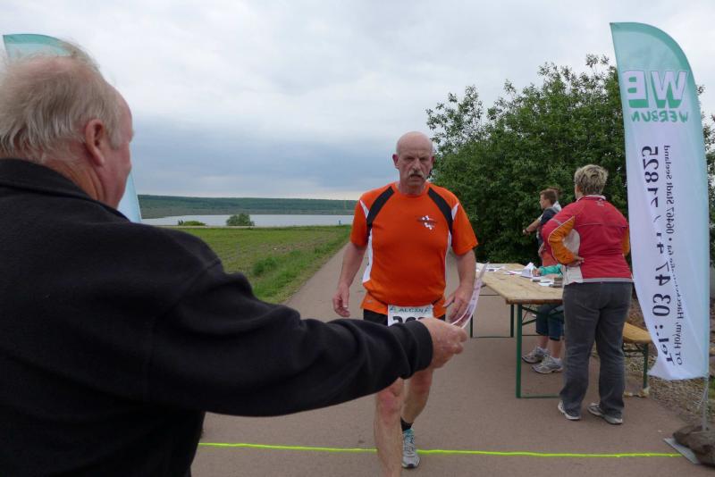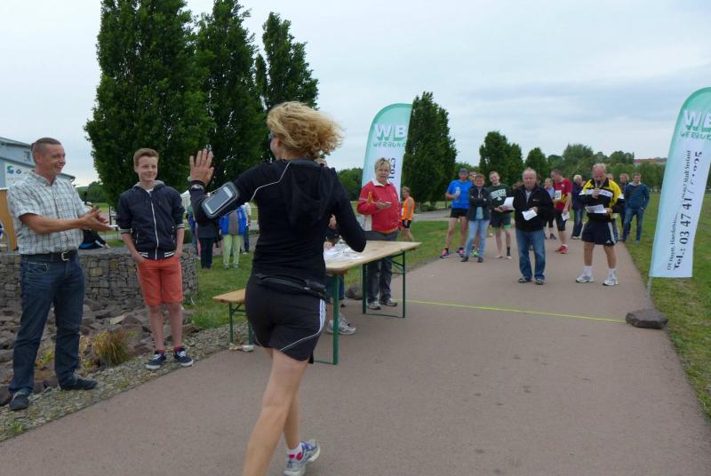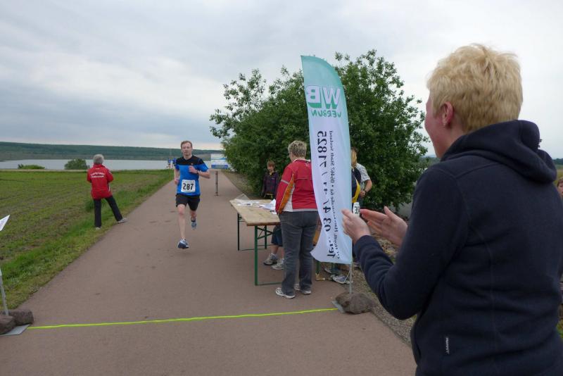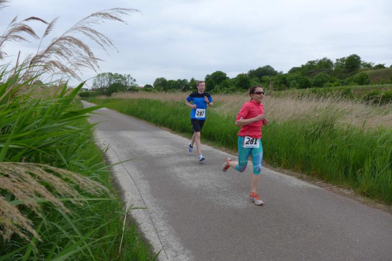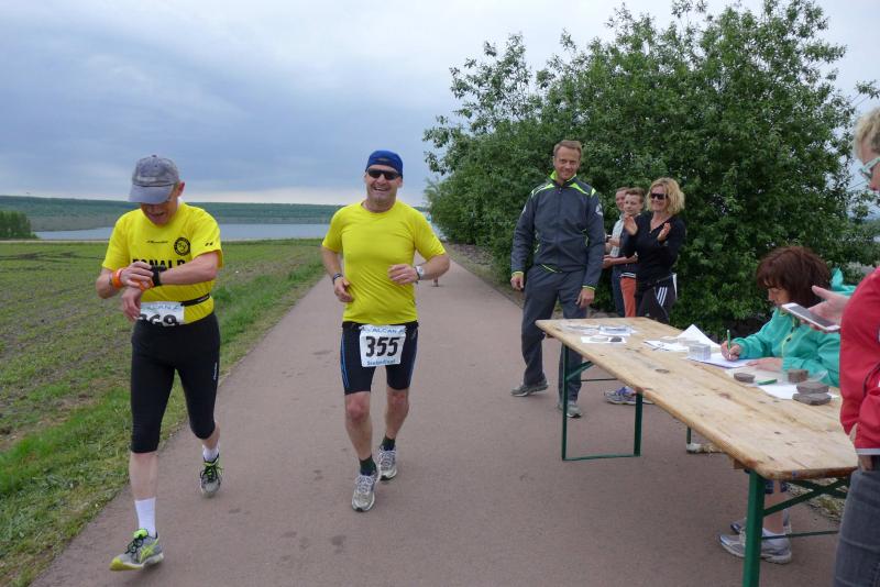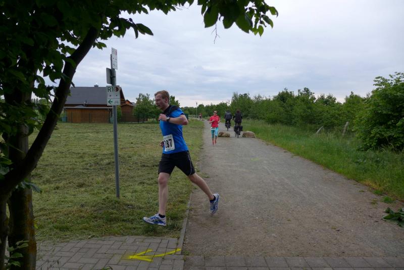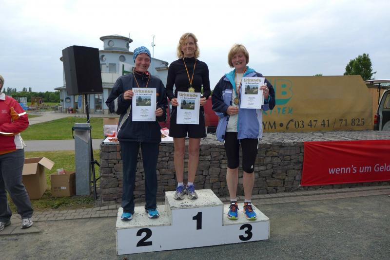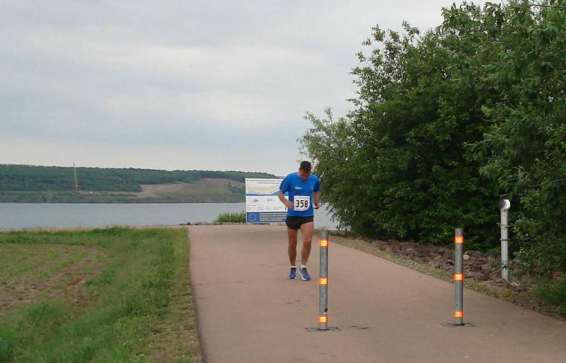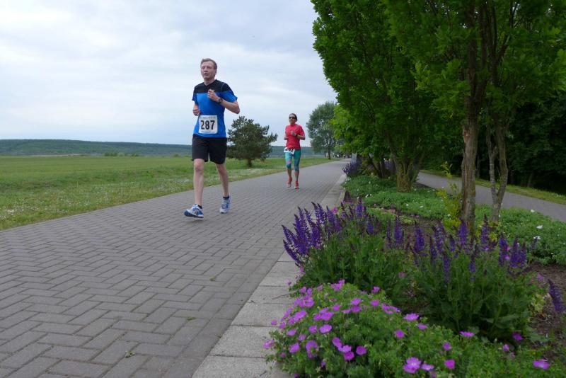 Mit dem gemeinsamen Start über die 7,2 und 14,4 Kilometer wurde es dann auch für die Hauptläufe ernst. Der Kurs führte zuerst durch die bunte Schadelebener Ferienhaussiedlung, noch einmal zurück zum Start- und Zielbereich, bevor der Abenteuerspielplatz bei Neu Königsaue angelaufen wurde. Auf der Seepromenade führten die letzten zwei Kilometer wieder zurück zum Aussichtspunkt nach Schadeleben. Bis auf einen heftigen Anstieg versprach die Strecke schnelle Zeiten. Holprige Wiesen- und Schotterwege verliehen dem Kurs zudem Cross-Charakter. Für die Langstrecke ging es auf eine zweite schweißtreibende Runde. In den dichten Waldabschnitten dämmerte es bereits, ein Zeichen dafür, wie spät es eigentlich schon war. Als der frische Seewind wieder zu spüren war stand dann fest: „Jetzt ist es nicht mehr weit!“ Bis auf den Fotografen, konnten alle Bode-Runners in ihren jeweiligen Altersklassen einen Podestplatz verbuchen. Sylvia Köhn nahm für den dritten Platz auf der Langdistanz im Gesamtklassement der Frauen noch einen Pokal mit nach Hause. Was für ein Start in das Wochenende!