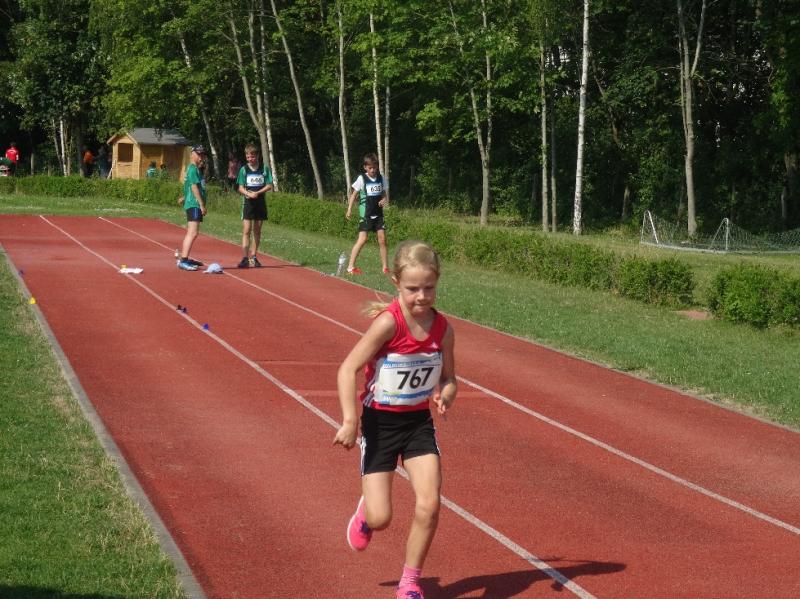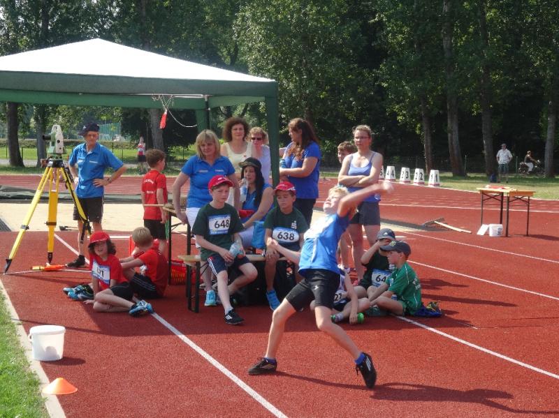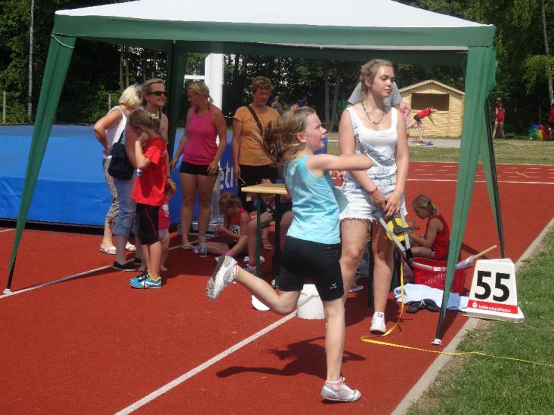 Celine Ladehoff (w13) hatte sich für Kugelstoß und 800m Lauf entschieden. Dass die Kugel bei 7,18m landete, löste bei ihr große Freude aus, zumal sie damit auch eine neue PB vorweisen konnte. Der 800m Lauf fiel dann wie auch bei den anderen Athleten der Hitze zum Opfer.