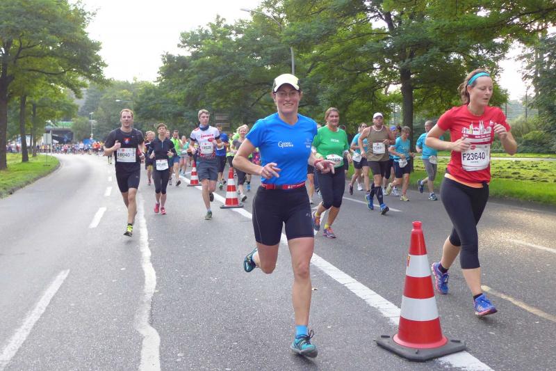 Die Startzeit der über 14.000 Halbmarathonläufer war verdammt früh angesetzt. Bereits um 8:30 Uhr wurden die ersten Läufer auf die Strecke geschickt und auch die Einteilung auf die einzelnen Startblöcke trennte die neun startenden Gaensefurther vorerst. Katrin Winkler-Hindricks musste sich über zwei Kilometer mühsam aus dem hinteren Feld freilaufen. Dass war es dann mit einer neuen Bestzeit, zu kräftezehrend die Aufholjagd durch das dichte Läuferfeld. Ganz andere Sorgen plagten dagegen die Debütantin Schäper. Auch in unterschiedlichen Blöcken einsortiert, hatte sie Mühe ihren Trainingspartner wieder zu finden. Den Tränen nah, stoppte Schäper: "Nicht ohne meinen Trainer!" Ganze fünf Minuten mussten vergehen, dann war er endlich zu sehen, nun wurde doch noch alles gut! Josef Hindricks hatte mit Sylvia Köhn einen idealen Laufpartner gefunden. Musste er nach Muskelproblemen kurzfristig pausieren, verlief dieser Halbmarathon-Test für seine ganz spezielle Vorbereitung auf den Marathon in Athen, optimal. Auch Jens-Uwe Börner war wieder in seinem Element. Der ausgeheilte Wadenmuskel machte das Sprinten zum nächsten Fotoshooting problemlos mit. So gelangen ihm auch Schnappschüsse der Marathonläufer, denn die später gestarteten Läufer tangieren oft die Strecke in der Gegenrichtung.