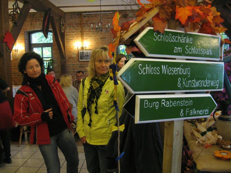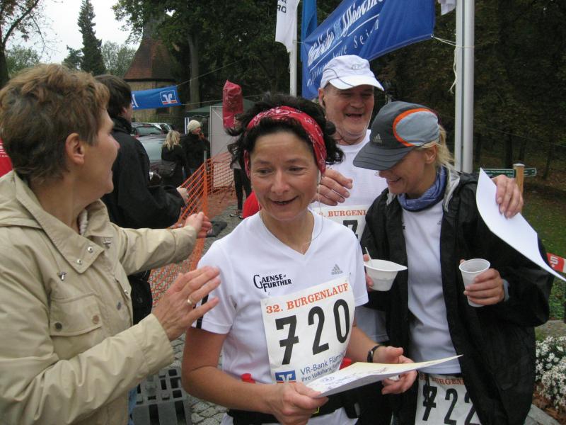 Als „Mutter aller Läufe“ unter Insidern benannt, zog sich am vergangenen Sonntag der Belziger Burgenlauf über 25 Kilometer durch die bunte Herbstlandschaft. Etwas länger als ein Halbmarathon und bergauf, bergab durch den Hohen Fläming, gingen acht Starter der Gaensefurther Sportbewegung diesen Crosslauf als letzte Vorbereitung für den Rügen-Brücken-Marathon an. Die Strecke war gut präpariert, hatte es doch am Vortag ordentlich geregnet. Und noch beim traditionellen Ehrenstart auf Burg Eisenhardt, drohten dunkle Regenwolken. Doch der guten Stimmung in dem großen Starterfeld machte dies keinen Abbruch. Bei angenehmen 12 Grad Celsius und leichtem Nieselregen ging es zusammen mit den acht Kilometerläufern auf die Strecke. Vom historischen Belziger Marktplatz mit seinen ca. 100 Höhenmetern über NN, kämpfte man sich nun allmählich bis auf 190 Meter hoch. Nur mit erhöhter Aufmerksamkeit und gegenseitiger Rücksichtnahme bewältigten die Sportler Stein- und Sandwege, Wurzelwerk oder durchnässte Grasnarben. Mitunter waren die Trampelpfade um die großen Pfützen für die hinteren Läufer nur noch gehend zu überqueren. Erleichterung für Renate Liedtke und Tina Börner, als sich die Acht-Kilometerstrecke vom restlichen Teilnehmerfeld trennte. Bevor es wieder bergauf ging, konnten sie sich auf der leicht abschüssigen Strecke erst einmal erholen. Nach nicht einmal einer Stunde erhielten sie bereits ihre Teilnehmerurkunden vom zuständigen Burgfräulein. Nun hieß es sich die Zeit zu vertreiben, bis die Langsteckler einlaufen.