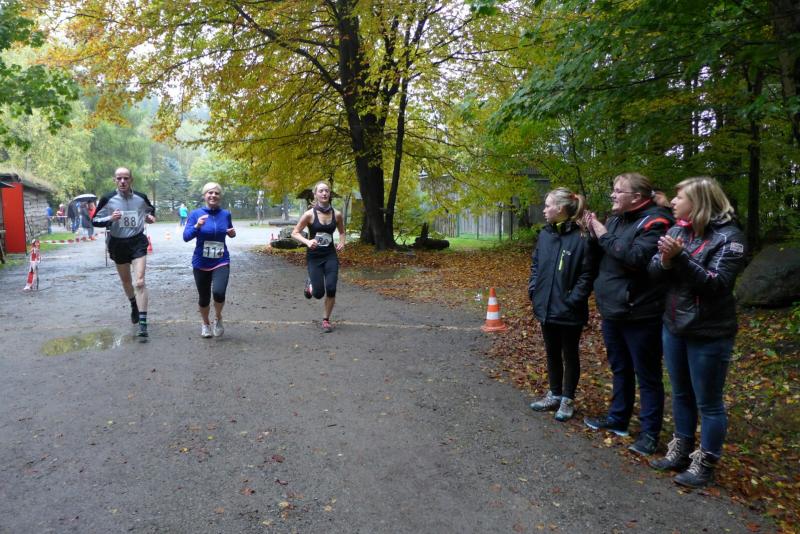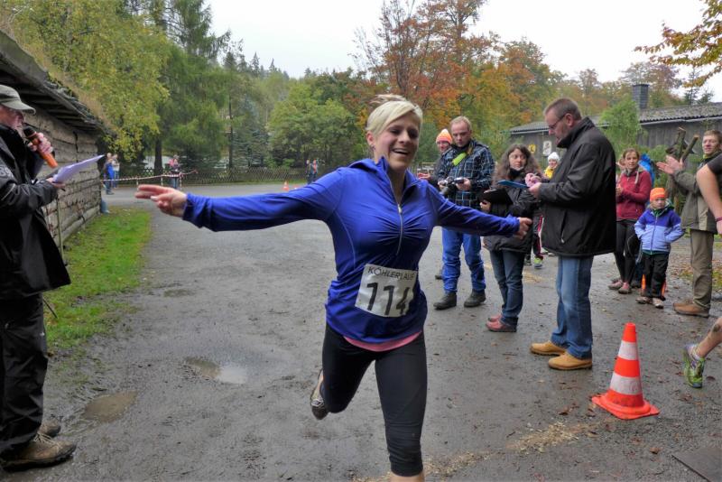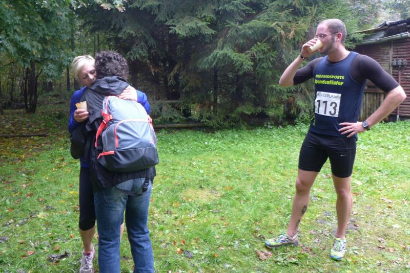 Dafür, dass die Börners gerne unbekannte Läufe testen um dann im nächsten Jahr vielleicht den Rest der Bode-Runners zu begeistern, sind sie verschrieben. Der Köhlerlauf, ausgetragen von der Harzköhlerei Stemberghaus, war mit seiner fünften Auflage noch nicht ganz den Kinderschuhen entwachsen. Der wunderschöne Rundkurs durch das Harzer Land, unweit von Pullman City und Rappbodetalsperre, hätte durchaus ein größeres Teilnehmerfeld verdient. Hier wurde zum Start mit dem Horn geblasen und wer am Ende zu den glücklichen Gewinnern gehörte, der erntete auch echt „Köhler-typische“ Produkte. So erlief sich die Gewinnerin über 10,5 Kilometer (Luisa Merkel, Nordischer Skiverein) gleich einen riesigen Sack Holzkohle für die nächste Grillsaison, während Yvonne Garnatz (Medansports Leipzig) die hochprozentige Holzkohle in verflüssigter Form überreicht bekam. Garnatz mit noch wenig Wettkampferfahrung, war zur Verstärkung der Gaensefurther aufgelaufen. Das schnelle Anfangstempo schockte, doch mit zunehmender Streckenlänge relativierte sich die Geschwindigkeit. Mit Lutz Schindler vom MSV Halberstadt fand sie dann das richtige Tempo, was sie bis zum Ziel halten konnte. Einstiger Bode-Runners Florian Börner rannte wie in alten Zeiten mit seinem Vater um die Wette. Aber das Rennen dauerte nicht lange an, hatte Börner Senior doch auch vom hinteren Streckenfeld noch Fotos zu machen. Nach dem Zieleinlauf waren sich alle einig: Ein weiterer schöner Harzlauf zum weitersagen…