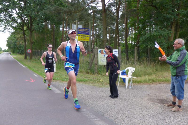 Der Sieg über die Hauptstrecke (1,5 Kilometer Schwimmen, 43,5 Kilometer Rad und zehn Kilometer Lauf) ging an Timo Kuhlmann aus Hannover, der nach 2:05:40,6 Stunden durch das Ziel lief. Nur knapp eine Minute später hatte Lokalmatador Erik Müller die Distanz hinter sich gebracht und damit den Landesmeistertitel in der Tasche.