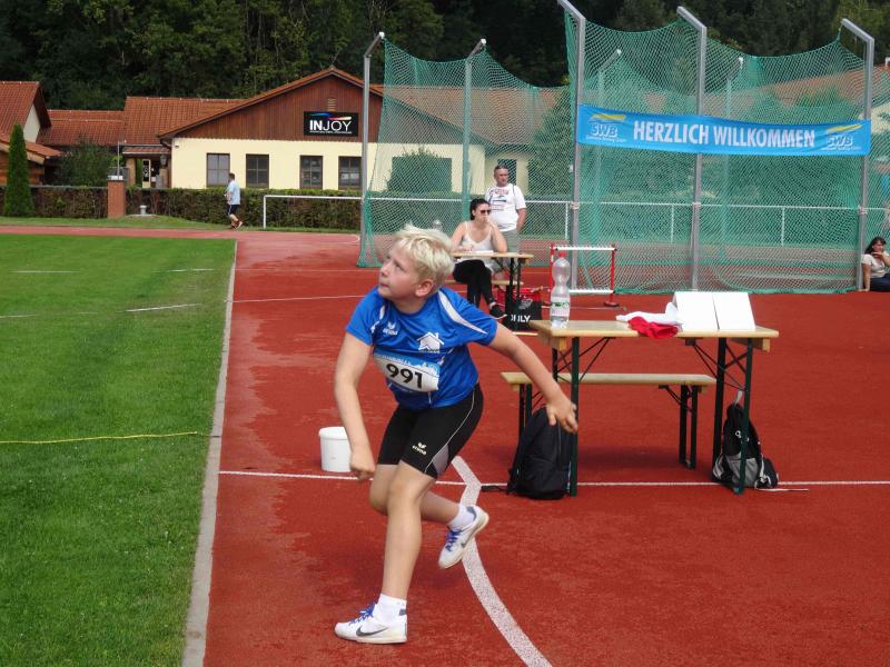 Jan Hübner (m10) stellte sich in 3 Disziplinen der Konkurrenz. Obwohl durch die Trainingspause kaum persönliche Bestleistungen (PB) zu erwarten waren, setzte er mit 8,47 Sekunden im 50m Lauf, jedoch ohne Endlaufteilnahme und 3,65 Meter (10.) im Weitsprung neue Bestmarken. Im Schlagballweitwurf wurde er mit 29,50 Meter ebenfalls Zehnter, wobei die Ergebnisse in allen Disziplinen eng beieinander lagen.