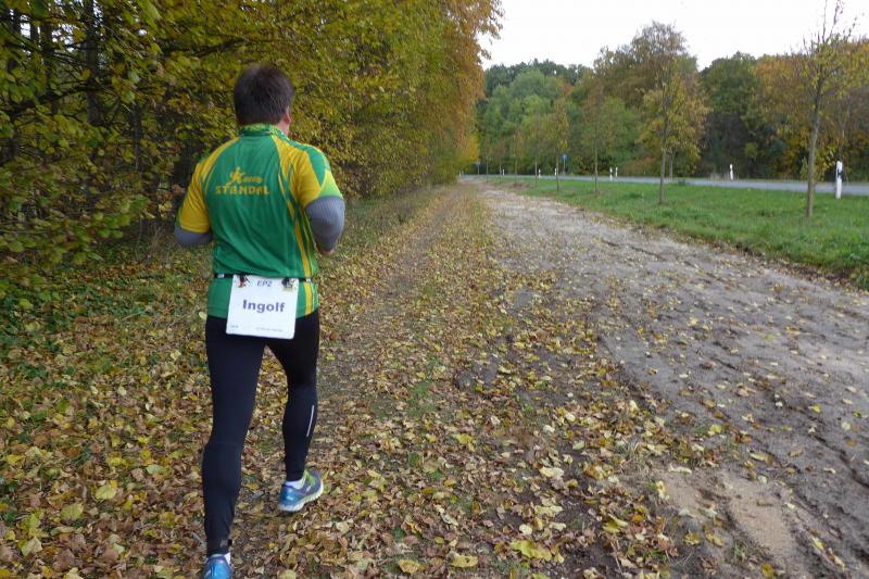 Voller Körpereinsatz auf der herbstlichen Laufstrecke