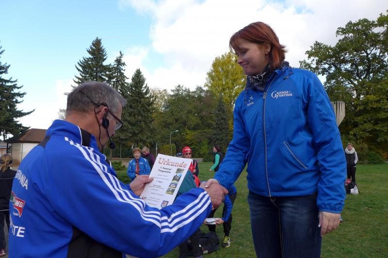 Dass sich die Laufstrecke dann auch der Jahreszeit entsprechend präsentierte, testete Jens-Uwe Börner nicht ganz freiwillig. Eine Ecke der kurvenreichen Strecke zu scharf und zu schnell in Angriff genommen, rutschten dem Läufer auf durchnässtem Laub ziemlich unsanft die Beine davon. Weich im Matsch gelandet, ging es also nicht nur verschwitzt sondern auch beschmutzt auf die letzte Parkrunde. Doch so sehr sich die männlichen Gaensefurther auch mühten, auf die Platzverteilung konnten sie am Ende keinen Einfluss nehmen. Umso erfolgreicher waren die Frauen unterwegs, die mit zwei ersten und einem zweiten Platz in ihren Altersklassen zufrieden die Heimreise antraten.