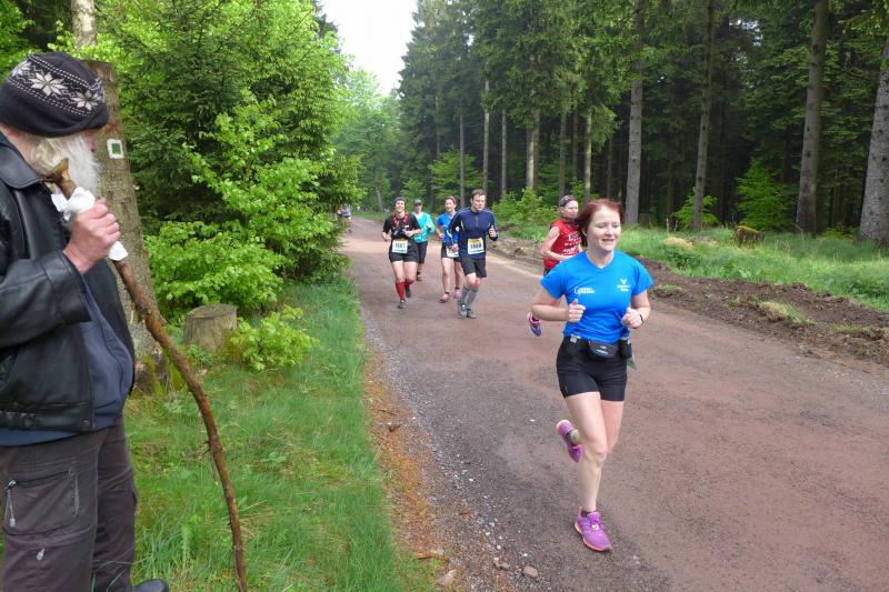 Kein Zeitlimit hatten sich Sylvia Köhn und Sabine Börner gesetzt. War Börner mit ihrer Zeit von 08:48 Stunden vor drei Jahren selig, galt bei ihr das Motto genießen, motivieren und ankommen. Bereits mit Übergabe der Startnummer mit den Ziffern „1111“ resümierte sie gelassen: „Das wird mein Lauf!“ Köhn schloss sich gerne den Routiniers an. Bei der Harzquerung über 51 Kilometer hatte sie erste Erfahrungen mit einem Ultralauf gemacht, mehrere Marathons galten der Vorbereitung, alles und allein dafür, diese Strecke durchzuhalten. An der Ebertswiese bei Kilometer 37,5 spürten viele Läufer schon einmal nach. Hier war die Hälfte bereits geschafft, reichte die Kraft aber für den Rest der Strecke? Mit der Verpflegung in der Hand wurde der nächste Berg von vielen nur noch im schnellen Schritt gegangen. Leises Gestöhne und schmerzverzogene Gesichter hielten die Fotografen an der Steigung für die Ewigkeit fest, bevor die Beine wieder im gleichmäßigen Rhythmus laufen konnten.