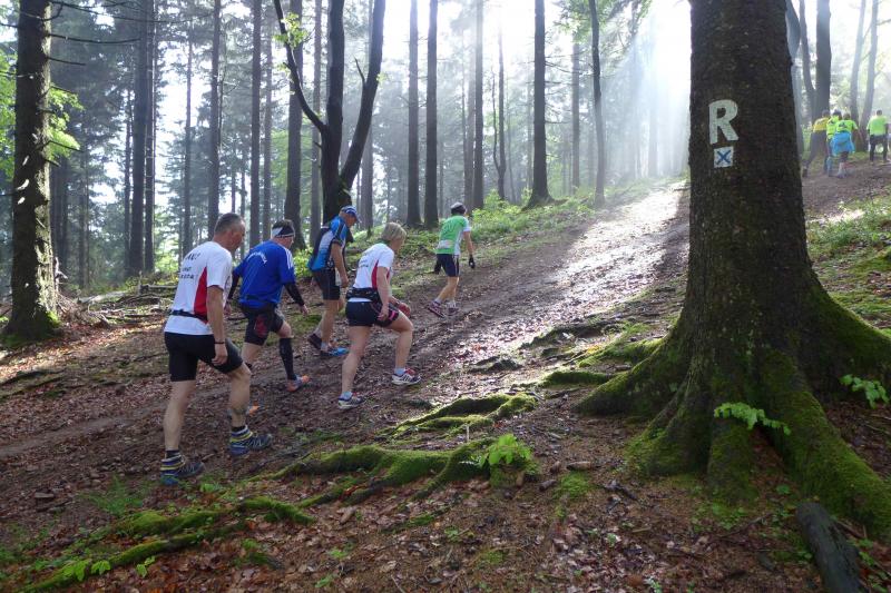 Die Ultraläufer hatten sich auf diese Herausforderung mehr oder weniger gut vorbereitet. Nicht immer harmonisierte das zeitaufwendige Training mit Job und Familie und mitunter zerstörten auch Krankheits- oder Verletzungsausfälle den Traum vom großen Finale. War mit dem Erreichen des Großen Inselsbergs das erste Etappenziel geschafft, ging es auf den nächsten 1,3 Kilometern brutal von 916 auf 746 Höhenmetern wieder hinab.
