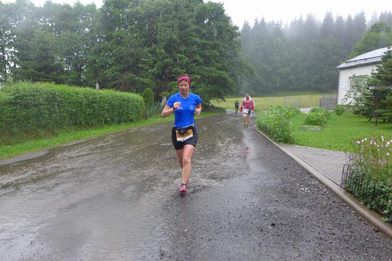 8:30 Uhr: Auf 700 Höhenmetern lag inzwischen der Kurs und am Wechselpunkt der Glasbachwiese hatte Jana den Chip für die Zeitmessung bereits an ihren zweiten Staffelläufer übergeben. „So einen heftigen Dauerregen hatten wir noch nie!“, versuchten sich die Helfer für das Wetter zu entschuldigen. Na toll, arbeitete es in Sabines Kopf und ausgerechnet in diesem Jahr musste sie den Thüringen Ultra ausprobieren? Mit müden Beinen resümierte Jens-Uwe: „Puh, ich bin ja jetzt schon fertig!“ Ein Ausruf, den Sabine lieber nicht gehört hätte, denn nun braute sich langsam ein Szenario zusammen, dass beinahe den ganzen Ausflug beendet hätte. „Fahr doch vor zum Wechsel und ruhe dich aus für die Laufstrecke, ich komme schon alleine klar!“ Aber Sabine wurde ihren Jens-Uwe nicht los.