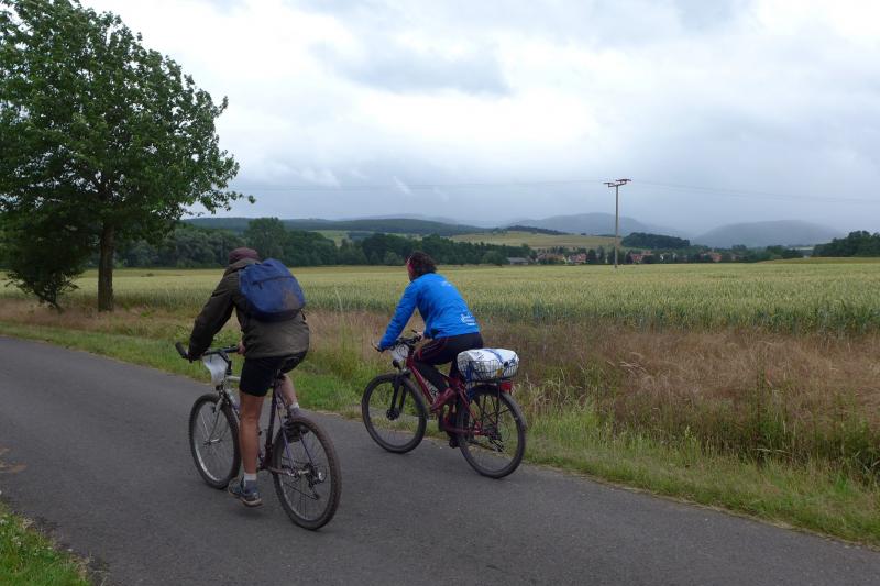 16:01 Uhr: „Jubi, ich liebe dich!“, schrie Sabine schon von weitem und auch Jens-Uwe schien sich erleichtert zu freuen. Vergessen die krassen Abfahrten, die weichen Knie, zusammen ging es auf den letzten 15 Kilometern Richtung Ziel. Beim Blick zurück versteckten sich die Berge immer noch in dicken Regenwolken.