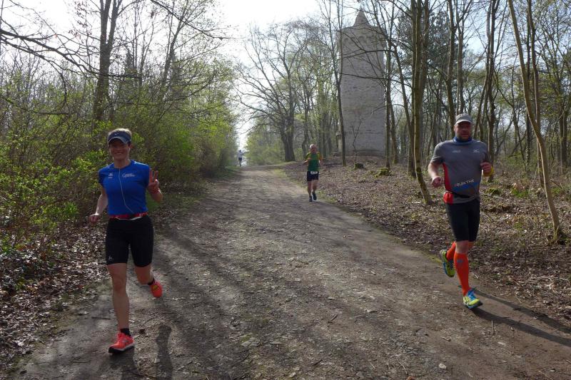 In den Wertungsläufen des Solvay-Cups trumpften diesmal die Herren der Schöpfung auf und landeten mit Jürgen Eisfeld, Lutz Klauß und André Geist nicht nur einen Volltreffer. Dafür hatten die drei Finisher harte Trainingseinheiten absolviert. Während die Sieger feierten, waren die Läufer auf dem langen Kanten noch durch das schöne Einetal unterwegs. Auf den satten Wiesenwegen ließ es sich herrlich weich laufen und entlang der Obstbäume an den warmen Südhängen wehte ein erster Blütenregen. Dass es dort nicht nur eine besonders schöne sondern auch anspruchsvolle Laufstrecke gibt, hatte sich sogar bis nach Nordrhein-Westfalen herumgesprochen. Ein ganzer Reisebus voller Teilnehmer nahm den Volkslauf zum Anlass, den Kurs über die Bestehornhöhe, Westberg, Welbsleben bis hinauf zur Burg Arnstein ganz persönlich in Augenschein zu nehmen. Nach der obligatorischen Runde um die Burgruine dominierten die Abwärtspassagen, doch bis kurz vor den erlösenden 25 Kilometern war die Strecke immer wieder mit Anstiegen gespickt. Kein Hindernis für die Damen der Gaensefurther Sportbewegung Katrin Winkler-Hindricks und Kirsten Geist, welche über diese Distanz stark auf Gesamtplatz eins und zwei einliefen. Auch Sylvia Köhn und Torsten Blauwitz siegten in ihren Altersklassen. So gut vorbereitet, sollte dem Ziel Marathon nichts mehr im Wege stehen.