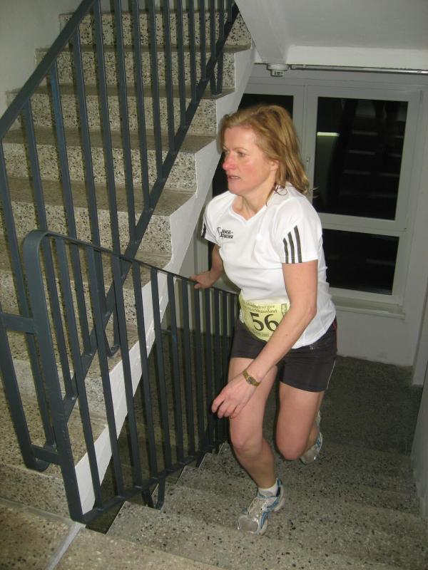 Jeder Sportler startet nach Eingabe seiner Startnummer in den PC für sich allein. „Fünf, vier, drei, zwei, eins - los!“ Die Entertaste bestätigt, Florian Börner mit der Startnummer 36 ist unterwegs. Nun beginnt der Wettlauf gegen die Uhr. Seit 2002 liegt der Streckenrekord über 232 Stufen bis in die 14. Etage bei 57,8 Sekunden. Nach 60 Metern Anlauf kommen die ersten acht Stufen vor dem Eingang in den Campus-Tower. Im Uhrzeigersinn geht es nun von Etage zu Etage, immer möglichst drei Stufen mit einmal. Weit am Geländer nach oben gegriffen, zieht sich Florian auf die nächste Treppe. In großen Ziffern steht die Geschosszahl an den Etagenausgängen. „Nur nicht hinsehen, jetzt noch nicht!“ Es läuft gut, die Kräfte richtig einteilen und tief Luft holen. Die Beine werden schwerer, aber mit der linken Hand auf dem Oberschenkel nachdrücken, das hilft beim Schwung holen. Die elfte Etage ist erreicht, die Lunge brennt von den tiefen Atemzügen aber die Beine spielen noch mit. Endlich kommt die 14, also noch 16 Stufen bis zum Ausgang. Ein kurzer Flur noch bis zur Ziellinie und alles life im Internet: „Guten Abend Magdeburg!“ Geschafft versinken die ankommenden Läufer im engen Flur vor der Fahrstuhltür. Sanitäter begutachten die nach Luft schnappenden Sportler und reichen Getränke. Florian Börner vom cash´n fun Junior Team der Salzlandsparkasse benötigte 64 Sekunden für seinen Hochhaustrip, am Ende ein glücklicher Platz in der Top-Ten-Wertung. Vater Jens-Uwe Börner, welcher etwas mehr Winterspeck in die 14. Etage schleppen musste, beendete als 79. diesen Lauf. Zum ersten Mal dabei, absolvierte Christoph Lampe von der ZLG Atzendorf tief beeindruckt und fasziniert, sein Debüt auf Platz 95. Bei den Frauen ein starkes Teilnehmerfeld. 19 Mädels waren bereits beim Kinderlauf gestartet, 34 Damen folgten nun beim Hauptlauf. Von den Bode-Runners der Gaensefurther Sportbewegung kam Annegret Wille am schnellsten nach oben (2. Pl. Altersklasse ab 35). Dicht gefolgt von Andrea Krukowski (3. Pl. AK ab 35) und Sabine Börner. Oben angekommen vermisste man in diesem Jahr die frische Luft und die tolle Aussicht auf das nächtliche Magdeburg, welche das kleine Flurfenster einfach nicht hergab. „Nun gut, aber runter nehmen wir jetzt den Fahrstuhl!“