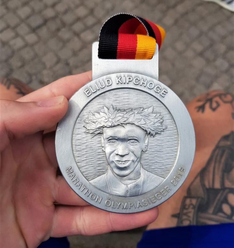 Gespannt verfolgten viele Bode-Runners die Live-Übertragung beim Sonntagsfrühstück, doch keiner konnte unter den 44.300 Startern Stefan Otto ausmachen. Solange bis sich der überglückliche Finisher persönlich melden konnte, sorgte die Zeitmessung via Internet für Informationen. Bis Kilometer 35 war Otto unter vier Minuten pro Kilometer unterwegs, danach war beißen angesagt. Und wie er gebissen hat! In Tel Aviv Anfang des Jahres erst unter 02:50 Stunden gefinisht, verkürzte Otto mit neuer persönlicher Bestzeit auf 02:47:51 Stunden! Und als hätte es der Veranstalter geahnt, waren die Medaillen mit dem Olympiasieger 2016, Eliud Kipchoge aus Kenia geprägt. Denn nicht nur Otto lief seine persönliche Bestzeit in Berlin, auch Kipchoge stellte mit 02:01:39 Stunden einen neuen Weltrekord auf. Was für ein Tag für Berlin, was für ein Tag für den Marathonsport!