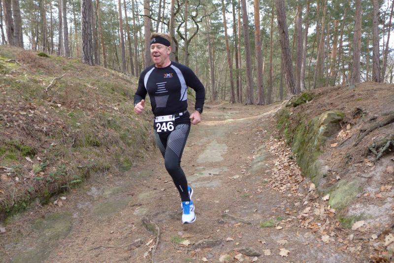 Doch mit dem Blankenburger Cross steigerten sich die Anforderungen gewaltig. Am Ende berichteten fünf Bode-Runners von Stürzen und dass, obwohl unzählige Wurzeln und Felsvorsprünge mit unübersehbarer Signalfarbe markiert waren. Nach dem Überqueren der neu benannten A36 und dem schweißtreibenden Anstieg hinauf zur mittelalterlichen Felsenburg, wurden die Anstrengungen der Läufer mit herrlich weichen Waldböden belohnt. Der Heers, ein wohlriechender, dichter Kiefernwald im Naturpark des nördlichen Harzvorlandes, erstreckt sich dort bis fast nach Halberstadt. Unbemerkt ging es für die Läufer vorbei an den Felsformationen der weichen Sandsteinhöhlen, bevor es nach fast 14 Kilometern über die A36 wieder zurück zum Sportforum ging. Und auch das gehörte zum Regensteinlauf mit dazu: Cheforganisator Matthias Heede ließ es sich trotz der ganzen Anspannung nicht nehmen, die Läufer vor dem Stadion zu empfangen und auf die letzten Meter der Stadionrunde zu schicken. In den Gesichtern war zu lesen, dass er und sein Team wieder alles richtig gut gemeistert hatten. So empfanden es auch die Gaensefurther, die sich in dem großen Starterfeld tapfer geschlagen hatten.