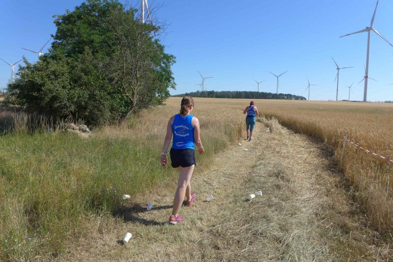 Der neu errichtete Windpark Hüselitz bildete die Kulisse zur dritten Auflage des Laufevents der Lüderitzer Vereine mit Unterstützung des SC Demker. Trotz der Temperaturen über 30 Grad, starteten 215 Läufer über die fünf angebotenen Streckenlängen. Der Moderator fand die treffenden Worte vor den Starts: „Seien sie bei dieser Hitze vorsichtig und trinken sie sehr viel. Es kommt weniger auf die Zeiten an, kommen sie gesund ins Ziel!“ Wie Recht er hatte, spendeten lediglich die Bäume am Sportplatz etwas Schatten, auf den Feldwegen brannte die Sonne erbarmungslos. Der Fanfarenzug Lüderitz eröffnete die Veranstaltung, bevor die Jüngsten auf eine Sportplatzrunde geschickt wurden. Jette Emilia Zaschke klemmte sich mit ihren fünf Jahren an Papas Sohlen und beendete die 400 Meter mit einem vierten Platz bei den bis achtjährigen Läufern. Über die 1,5 Kilometer ihrer Schwester Rieke Lucie Zaschke hatten die Beine des in der Altersklasse M45 startenden Papas dann etwas Mühe zu folgen. Mit 46 Sekunden Vorsprung auf Platz zwei, siegte Rieke souverän in der jüngsten Altersklasse. Wenn sie so weiter trainiert, wird sie ihr Ziel, einmal fünf Kilometer zu laufen, sicher bald umsetzen. Laut Empfehlung der Deutschen Leichtathletikordnung ist diese Streckenlänge aber erst ab Altersklasse U12 zu werten. Rieke wird also noch eine ganze Weile warten müssen.
